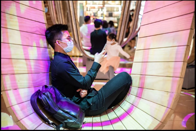 近日,广州太古汇迎来开业十周年,恰逢英国艺术家作品《请就座》巡展入驻其 M 层中庭。继成都站首展后,此次艺术品来到广州,太古汇别出心裁地融入新元素,创造了一个沉浸式声光互动空间,采用数字投影技术的Mapping装置首次在商业空间做展示,让市民可以在太古汇近距离感受互动光影打造的沉浸式体验,引导人们在后疫情时期,重新思考时间、秩序与行为、生活之间的关系。
