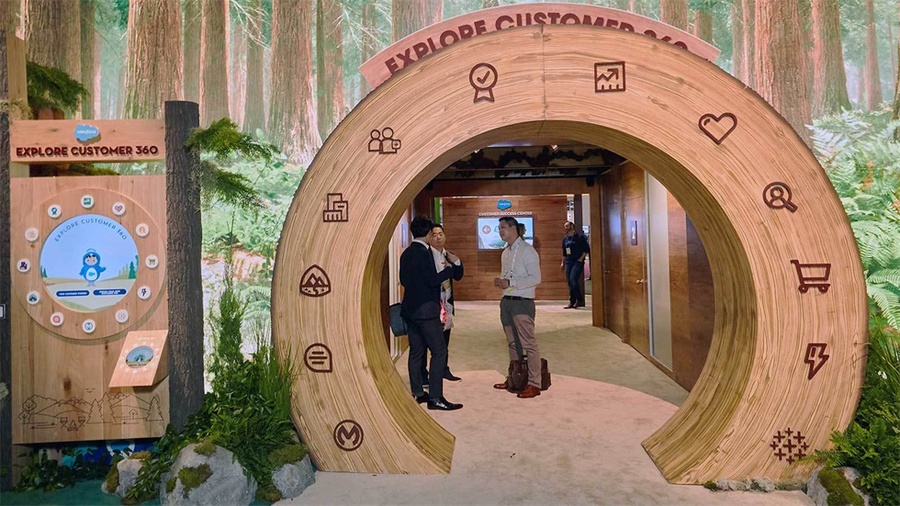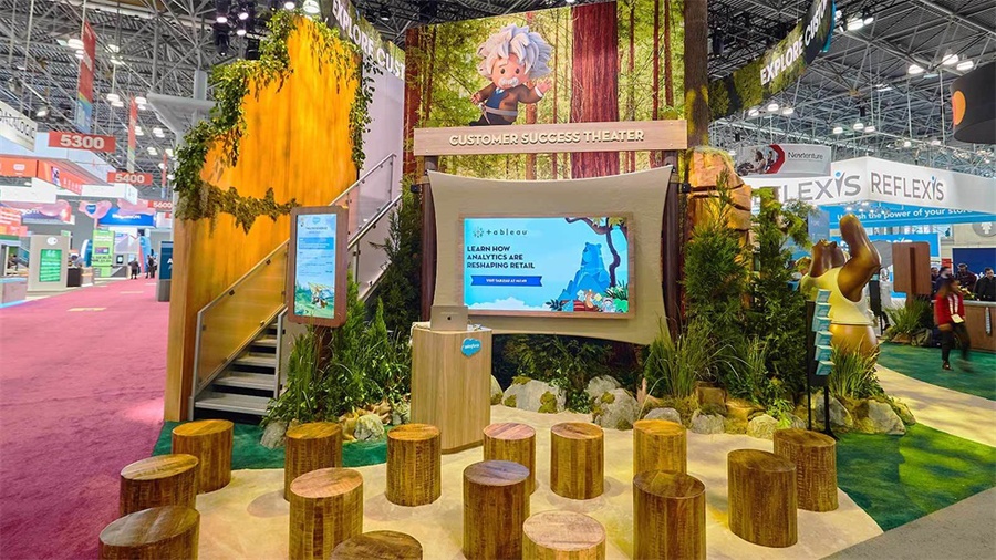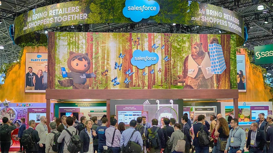 Salesforce在零售业大会的232平方的展示厅举行了活动,双层的展览区为与会者提供身临其境、视觉刺激的体验,了解品牌是如何与客户建立联系的,展示了Salesforce与包括媒体和分析师在内的行业关键影响者的合作。