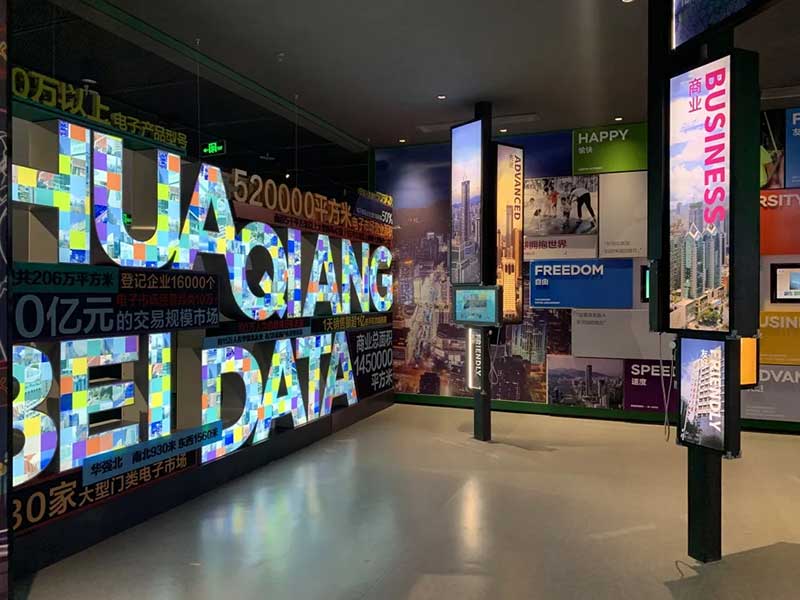 博物馆的常设展览《创业的摇篮,创新的天堂》包括发展梦、创业梦、创新梦、未来梦4个篇章:发展梦以时间为脉络,展现华强北从上步工业区起步的发展历程;创业梦展示了华强北企业和华强北人的创业之路;创新梦展示了华强北不断创新、不断升级蝶变的发展史;未来梦通过全景式视角,阐述华强北在“新时代、新湾区”中的“新机遇”和“新作为”。四大篇章的呈现都充满了科技元素,艺术地再现了华强北人永不言弃、筑梦未来的精神。