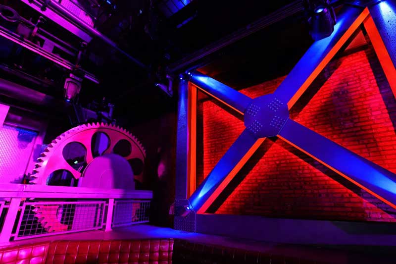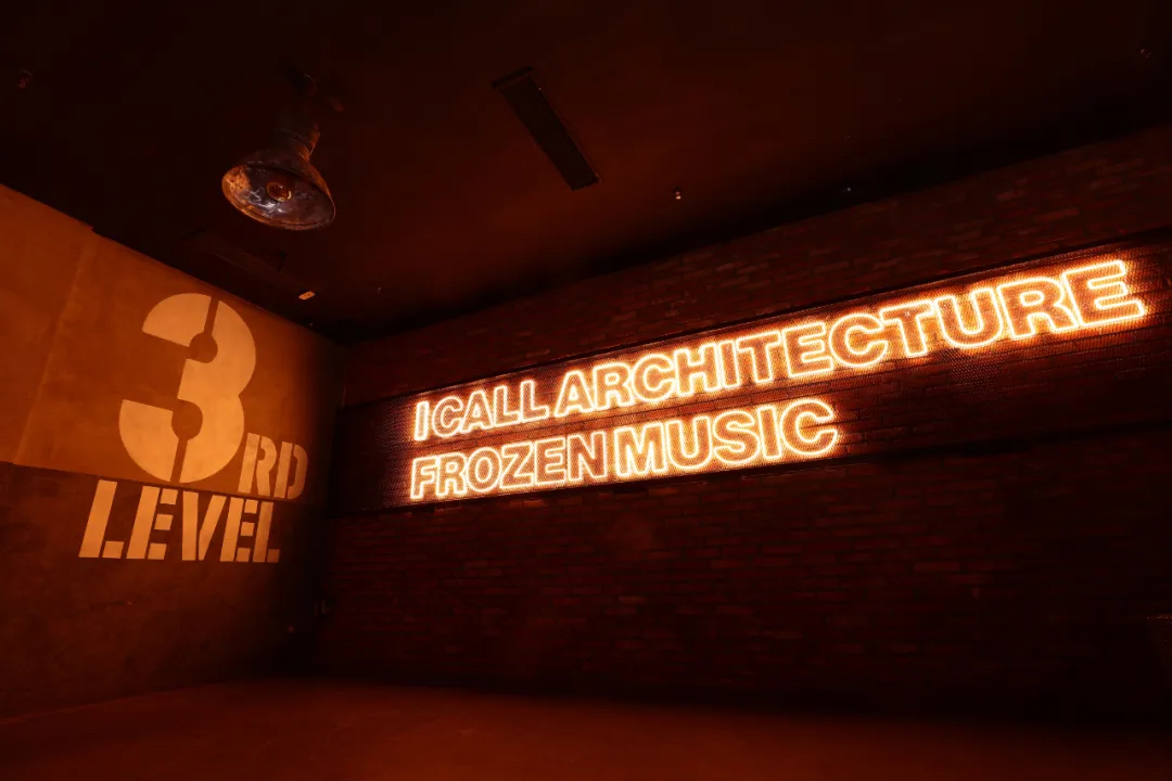 穿过杭州ONE THIRD长廊和前厅,光影和建筑构建成的通透空间,运用分裂与解析的手法打破和分解了既存的形式、意向格局和模式,导致一定程度上的模糊性和多义性。每一个空间节点都有其自身存在的意义,又统一用工业文明语言将它们串联在一起,让参与者在其中寻找所需要的狂欢密码。