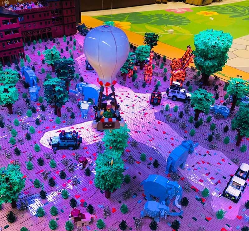 《V Walk东非游学园》展览中瞩目的是由香港慨「乐高®️专业认证大师」洪子健以约80万粒LEGO颗粒组合拼砌慨「动物大迁徙互动LEGO创意场景」等展品。乐高®专业认证大师Andy Hung及其团队首次制作,4米x 2米的东非肯亚动物大迁徙巨型互动场景模型——《动物大迁徙互动LEGO创意场景》,配合不同灯光效果展现动物大迁徙多个不同景象,带你瞬间走过日与夜, 包括乘坐探险车及热气球、观赏过百只草原动物及入住肯亚着名酒店等,高度还原非洲大草原日与夜最真实场景,现场更特设声音与文字导航,让大小朋友可更深入了解箇中奥秘。