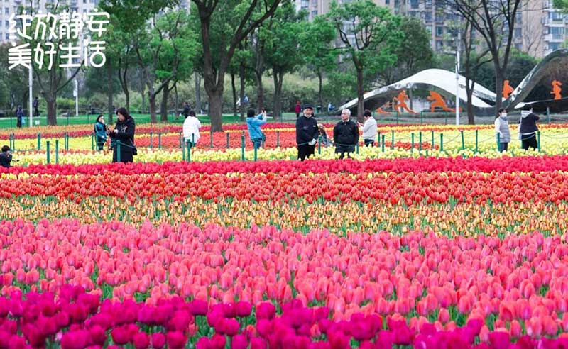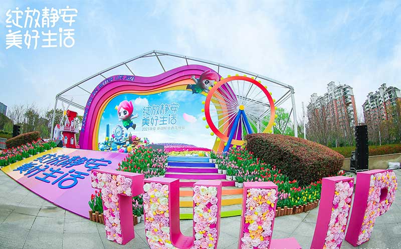 “绽放静安 美好生活”2021静安·新湖郁金香花博会主题日在大宁公园启动,从公园北门入口到南国风光沿线,呈现“时间的繁花”“幸福回响”“时代芳华”“美好向新”“百舸争流”等5大主题花海,并在罗马广场设立线下郁金香博物馆,方便市民和游客在赏花的同时了解更多郁金香相关知识。