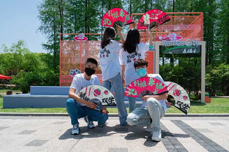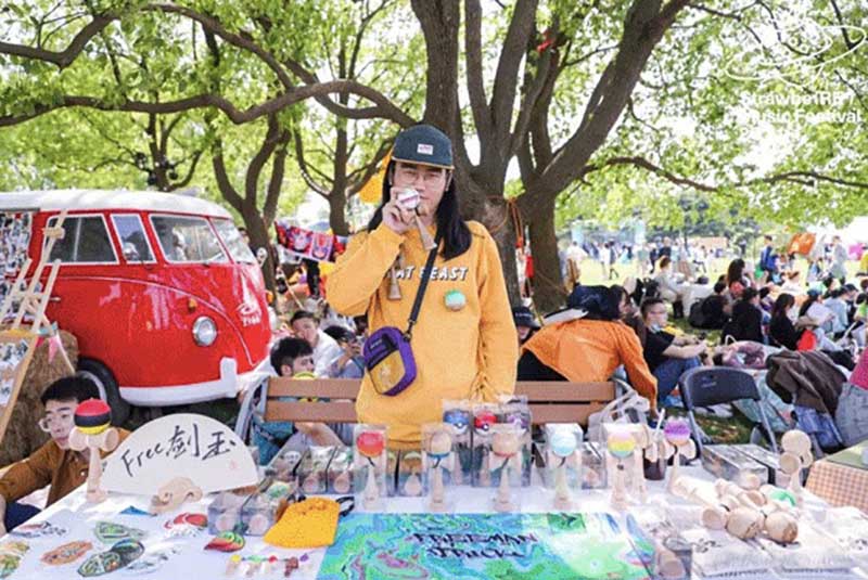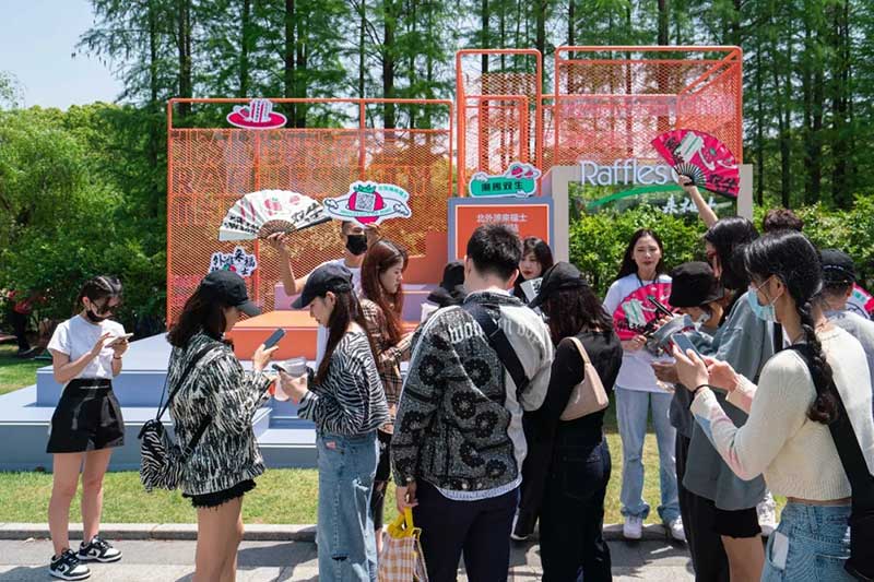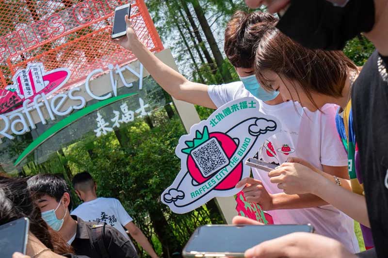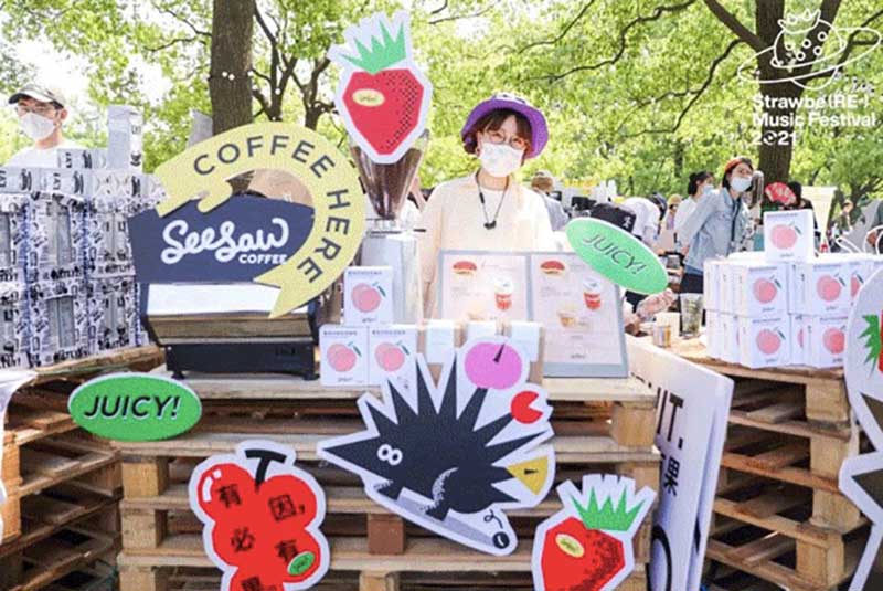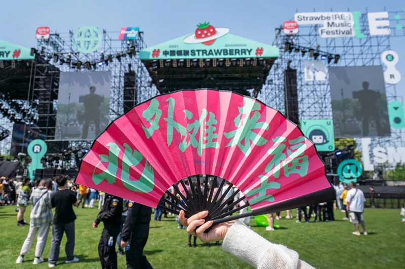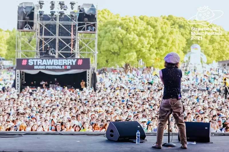 在草莓音乐节现场,除了精彩的表演,来自各品牌争奇斗艳的展台,也很值得一逛。例如从白天火到深夜的北外滩来福士展台,明亮的荧光橙在一众展台里非常吸睛。分为上下两层,用橙色网格围绕,怎么拍都好看的北外滩来福士展台,因为超高的颜值和出片率,一度在现场引来排队拍照的热潮。无论是背靠青葱树林的二层展台,或是巧用台阶拉出大长腿的一楼区域,都是分分钟出大片的“摆拍圣地”。巧用镜子元素拉长视觉空间的“秘密基地”,更是惹来神颜小姐姐们前来打卡。入夜后,亮起橙色LED灯的展台更为炫目。在会发光的台阶上,跟着主舞台的音乐节奏,肆意摇摆身体,感受夜间的徐徐微风和粉丝的浓厚热情,这一届草莓音乐节着实令人难忘。
