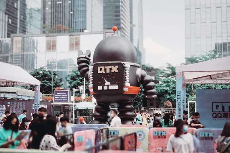 QTX2021终于在深圳福田会展中心迎来开展,QTX官方形象大使-顽艺鹅屹立在展馆门外,挥动双手,英姿威武,迎接每一位来观展的游客。进入展馆,顽艺鹅,名画鹅等各色大型装置闯入眼帘,吸睛指数Max。QTX重磅展中展专区,艺术家Michael Lau 作品与Daniel Arsham AE系列作品展,经典,新潮与先锋的碰撞,掀起与众不同与极为难得的艺术体验。