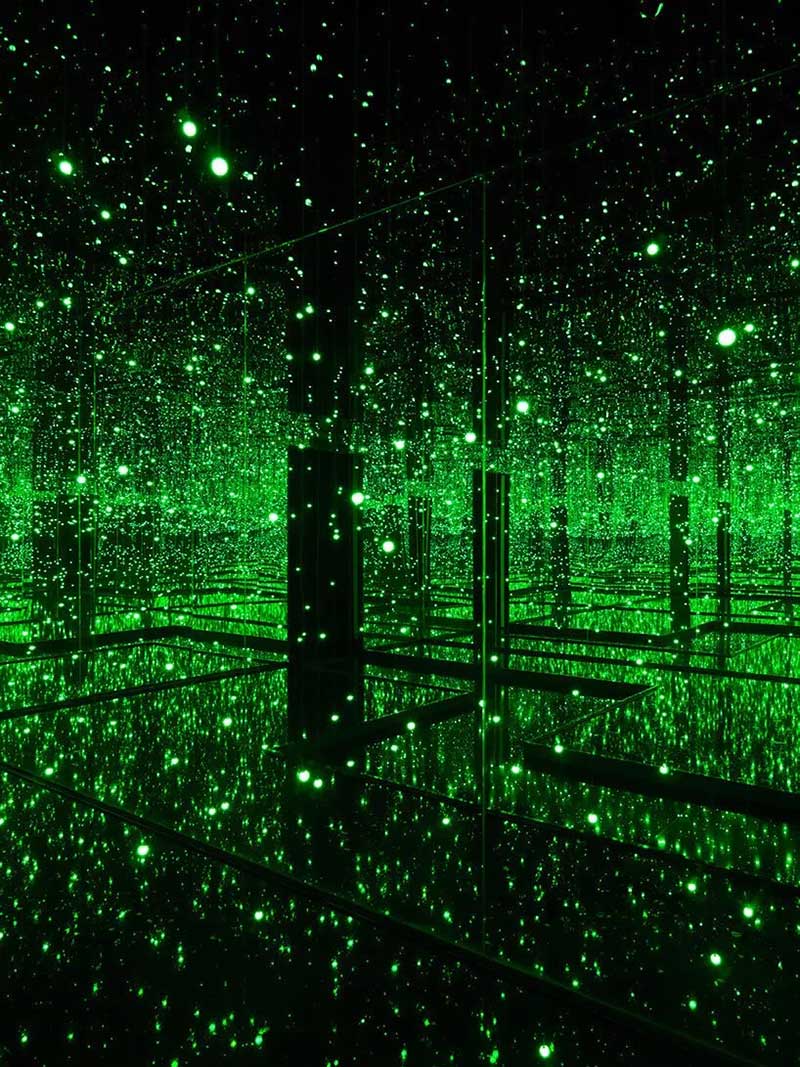 多次重复、无边无际,以及绚烂迷离的色彩与图样等等特性,是此次泰特美术馆「草间弥生:《无尽的房间》」展览中两个作品共通的迷人特质。两个镜屋都展现了草间弥生打破主客体分野,营造她独有的无限宇宙之能力。无限镜绚烂迷离,迷幻华美、虚实难辨的风采撼动了许多艺术爱好者的心。
