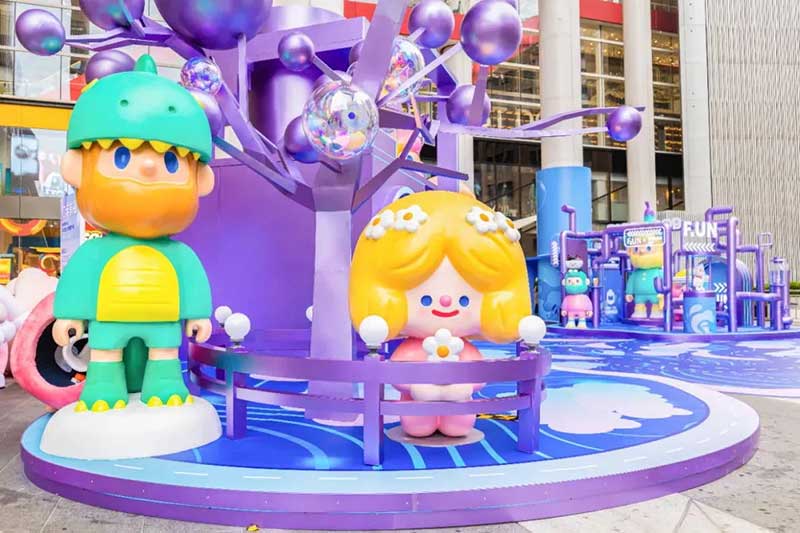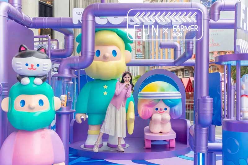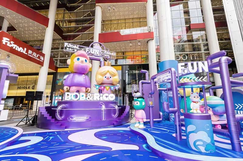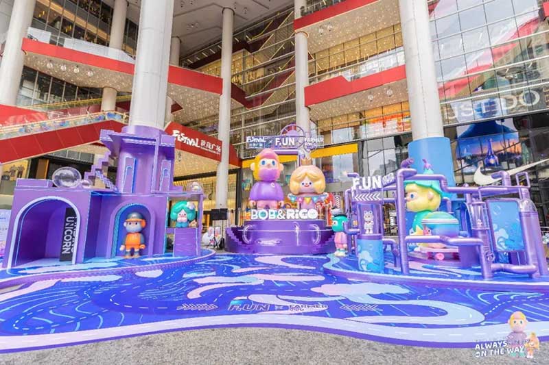 在上海世茂广场的外广场上,展览将以「旅行」、「路」为主元素贯穿整体,配合箭头、路标、台阶、次元通道等元素,为消费者营造出一片梦幻旅行乌托邦。BOB和RiCO的故事将由“巨大化的幸福阶梯”、“旅途中邂逅的伙伴们”、“皆为彼此风景”、“与你遇见新的自己”四大场景组成,每一个场景都由这对“潮流CP”的经典形象来表达对应的故事,全力打造沉浸式潮流互动新体验的同时,也将让游客收获满满的陪伴感和治愈感。