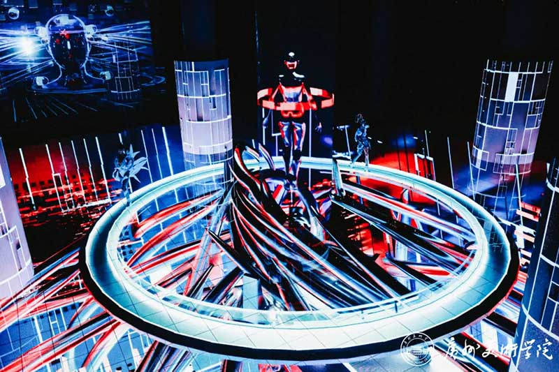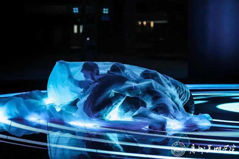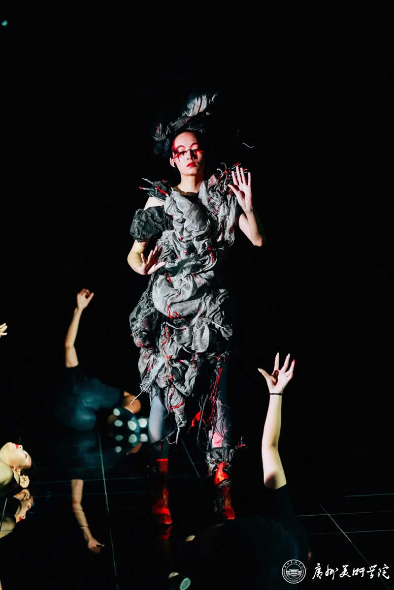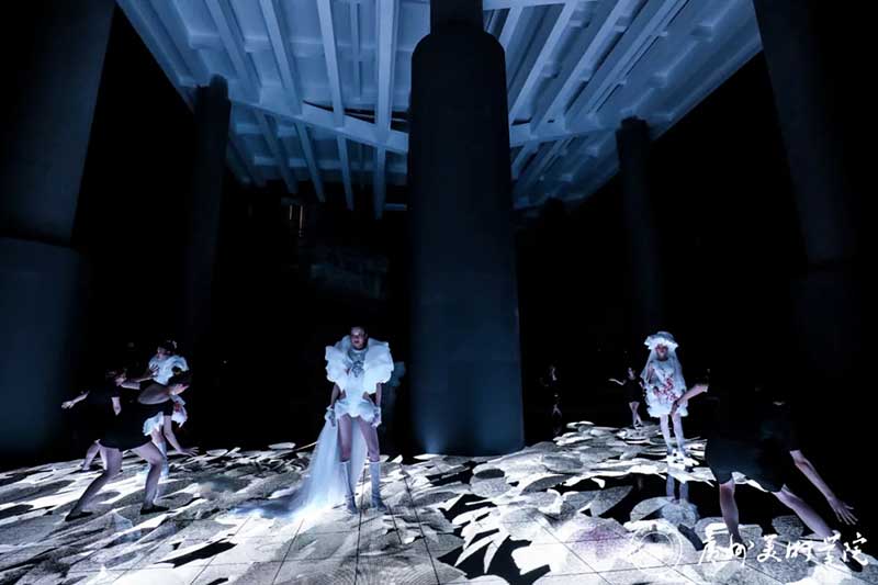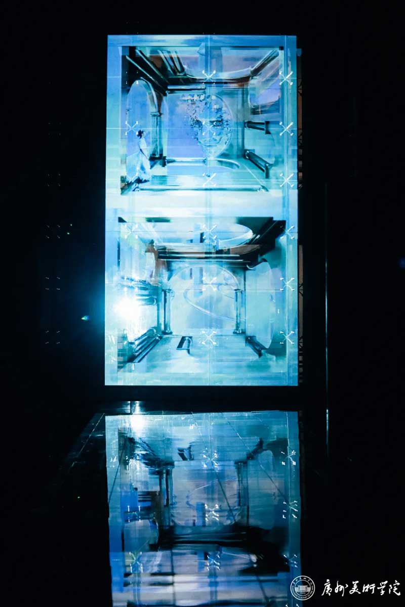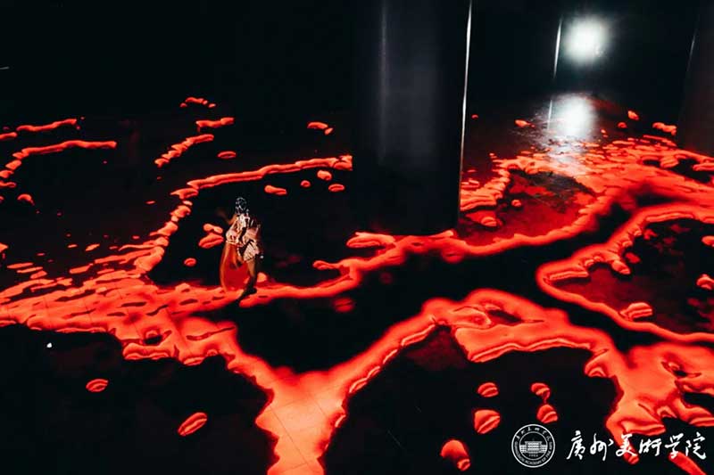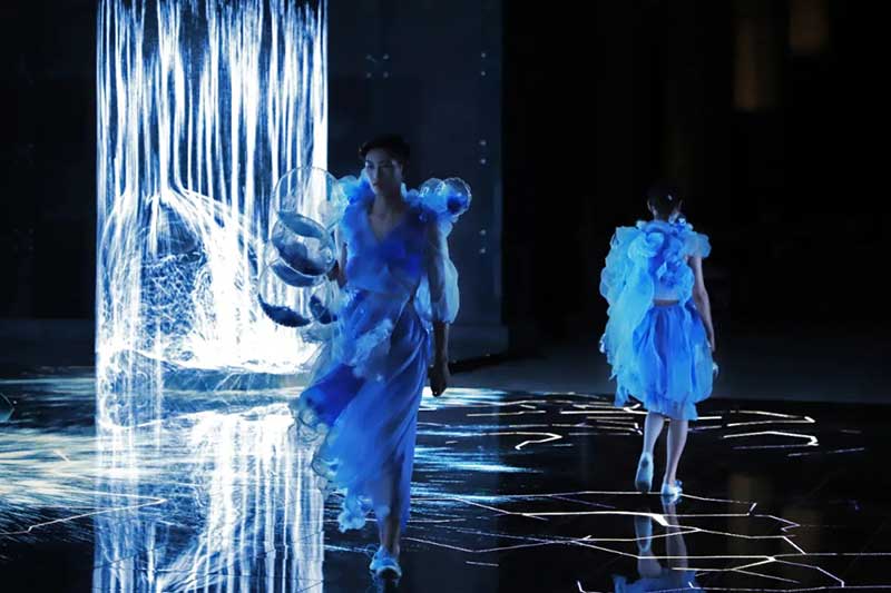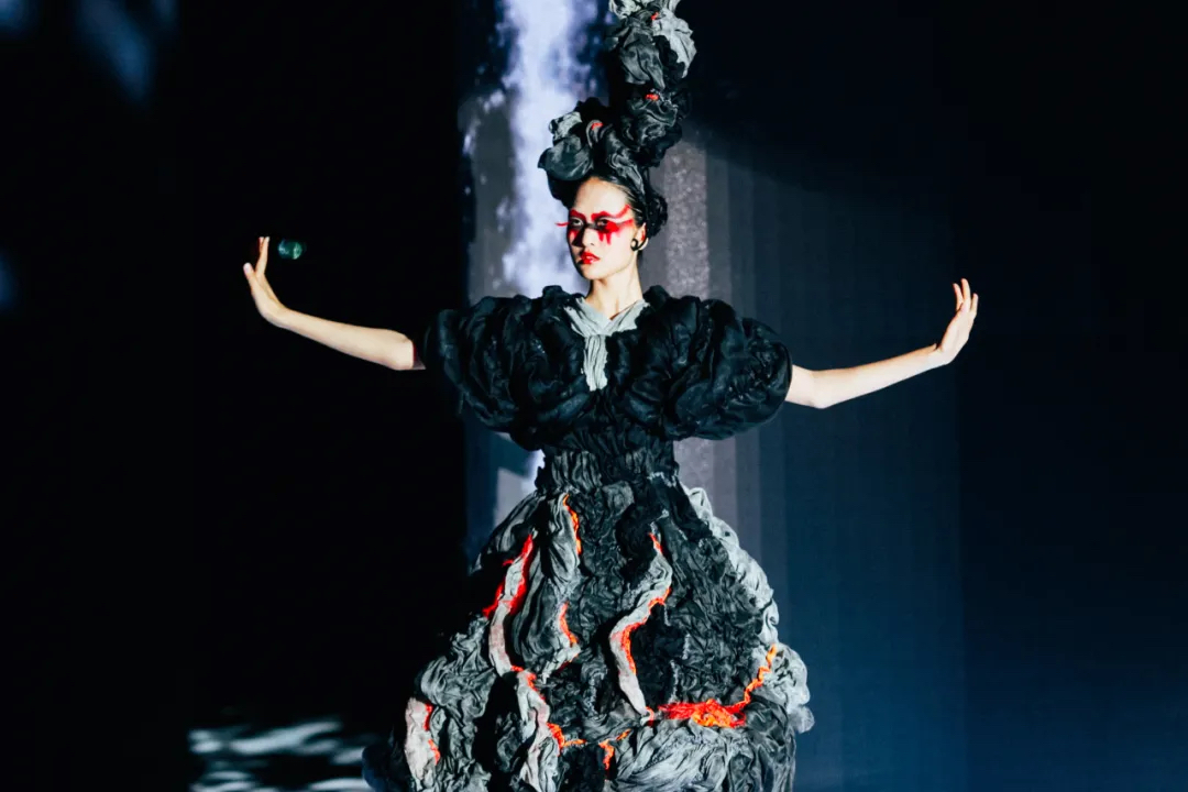 《屏视世界:融合与聚变》是一个融合广州美术学院视觉艺术设计学院数字媒体艺术2021届18名毕业生和广州美术学院工业设计学院服装与服饰设计专业2021届13名毕业生的一次沉浸式新媒体服装艺术展演的创新尝试。《屏视世界:融合与聚变》的舞台并不单一指向技术手段上的跨学科交流,更是我们对自然和未来应有的敬畏和憧憬。