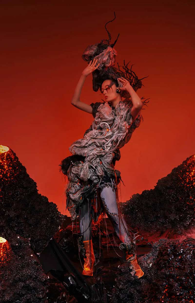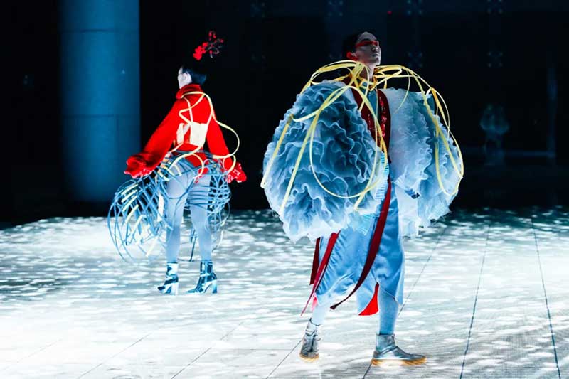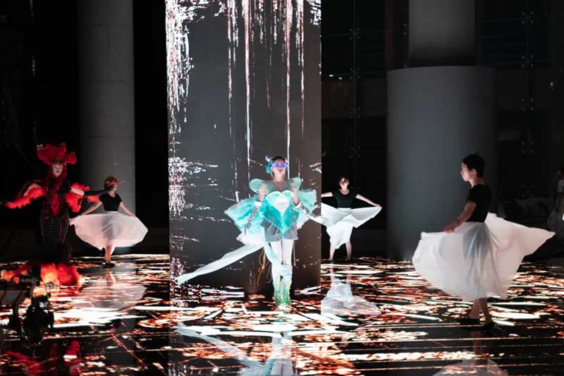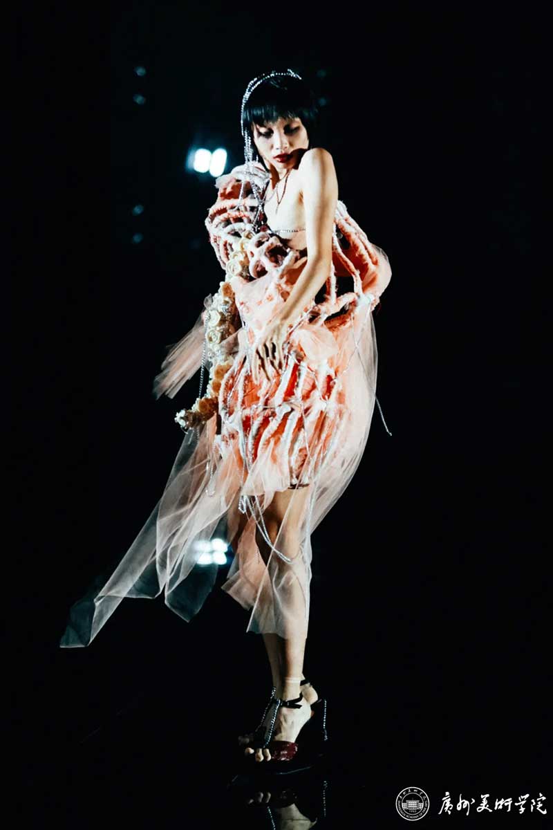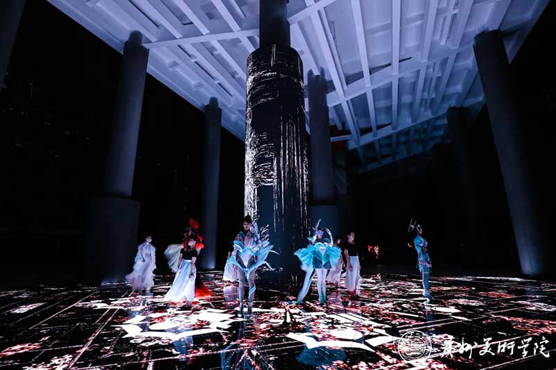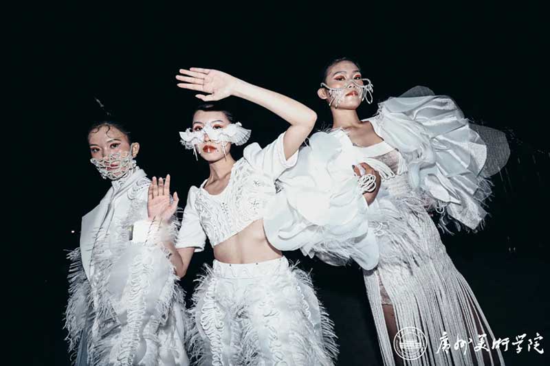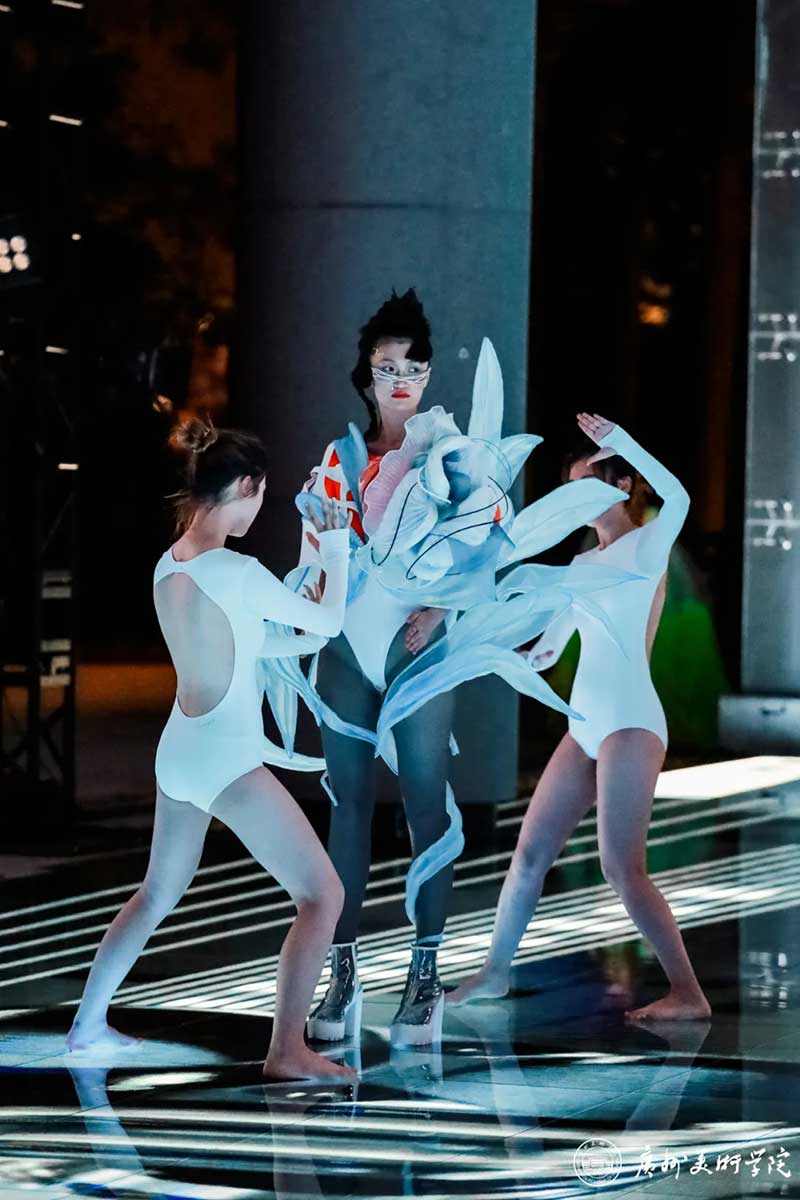 《屏视世界:融合与聚变》是一个融合广州美术学院视觉艺术设计学院数字媒体艺术2021届18名毕业生和广州美术学院工业设计学院服装与服饰设计专业2021届13名毕业生的一次沉浸式新媒体服装艺术展演的创新尝试。《屏视世界:融合与聚变》的舞台并不单一指向技术手段上的跨学科交流,更是我们对自然和未来应有的敬畏和憧憬。