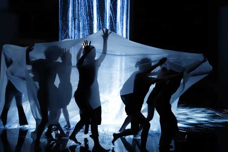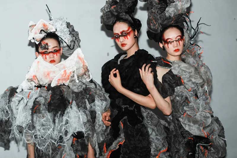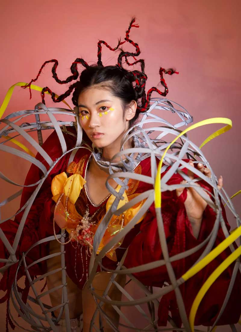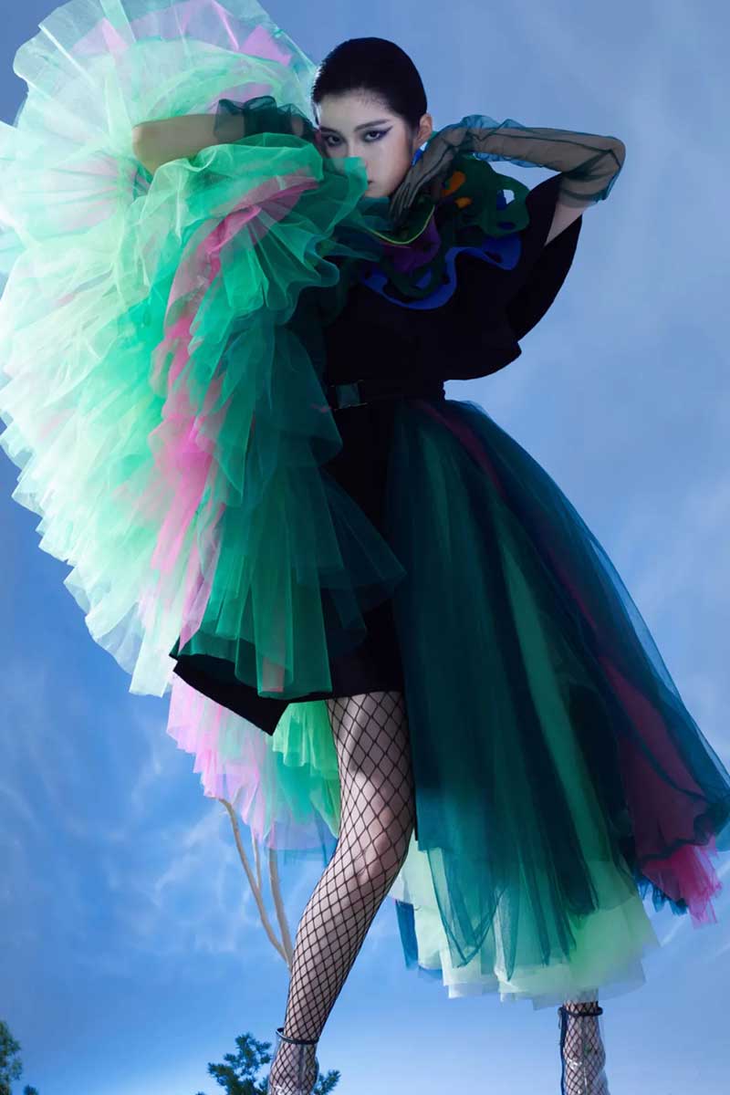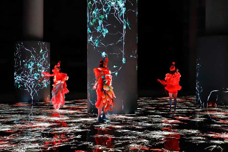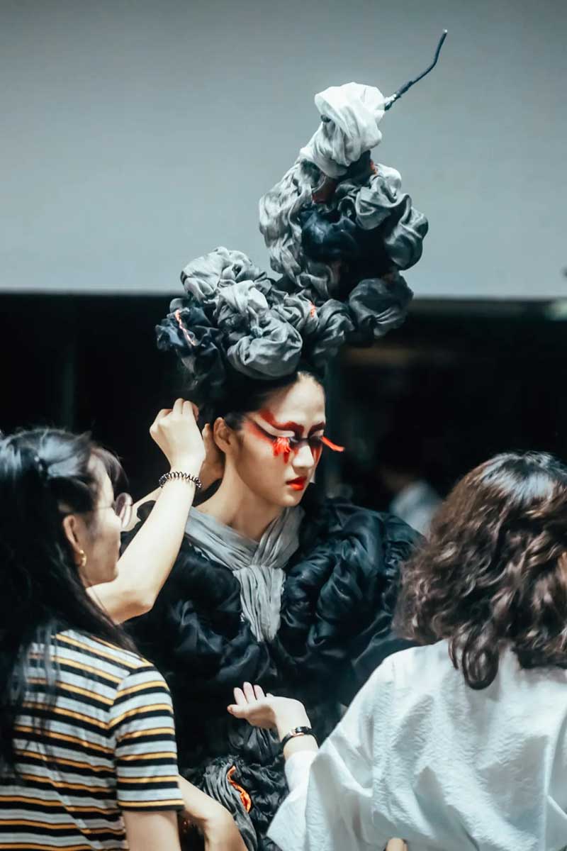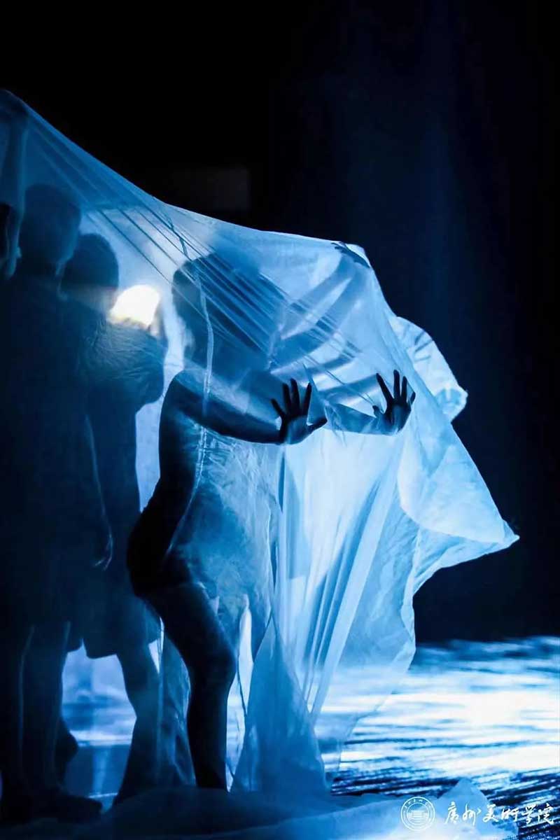 《屏视世界:融合与聚变》是一个融合广州美术学院视觉艺术设计学院数字媒体艺术2021届18名毕业生和广州美术学院工业设计学院服装与服饰设计专业2021届13名毕业生的一次沉浸式新媒体服装艺术展演的创新尝试。《屏视世界:融合与聚变》的舞台并不单一指向技术手段上的跨学科交流,更是我们对自然和未来应有的敬畏和憧憬。