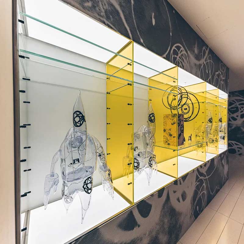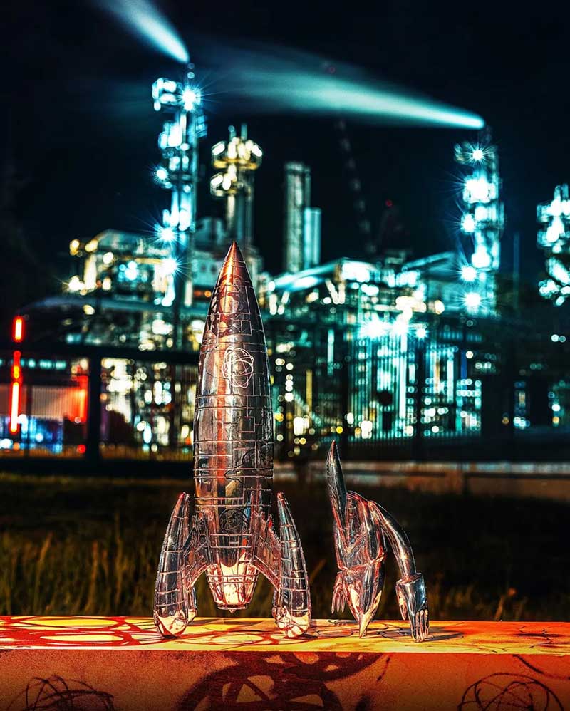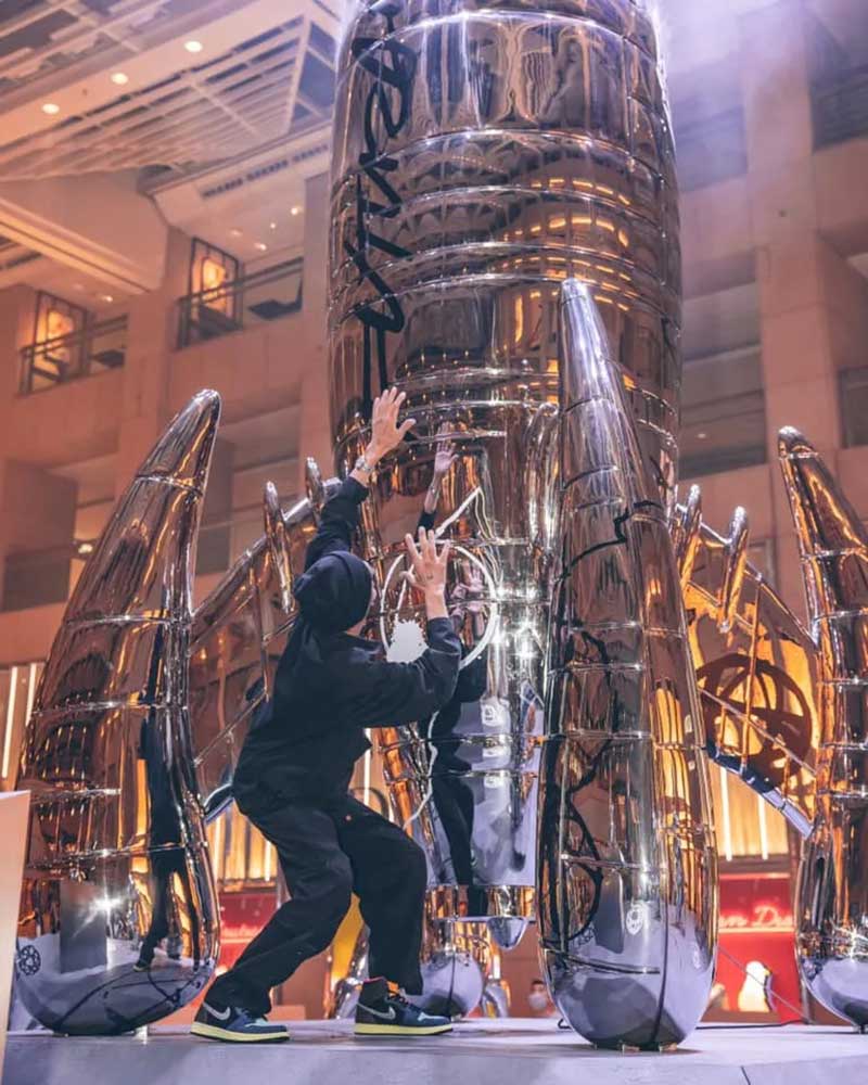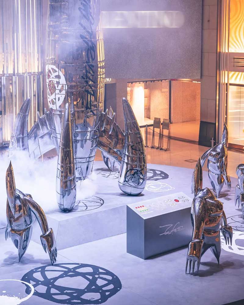 近年涂鸦艺术家的作品在艺术界的地位愈见重要,其中来自美国的FUTURA的地位更是数一数二,置地廣塲和 BELOWGROUND 迎来了传奇当代艺术家 FUTURA (又名 FUTURA2000) ,并联手全球知名创意工作室 AllRightsReserved (ARR) 及FUTURA 的品牌兼设计工作室 Futura Laboratories,打造「Futuraland」艺术空间,以太空基地为主题概念,展出他首个最大型的艺术作品六米高巨型火箭《X-6000》 ,还有七个1.8米高FL-006外星人型雕塑。