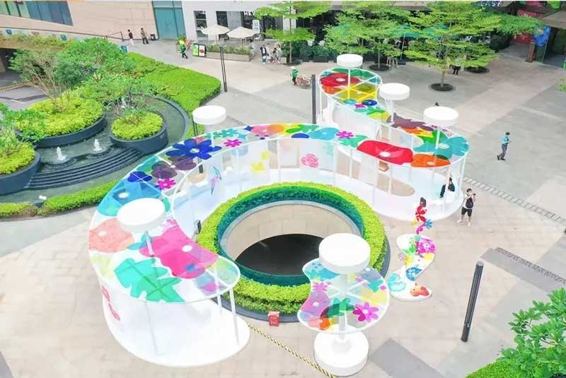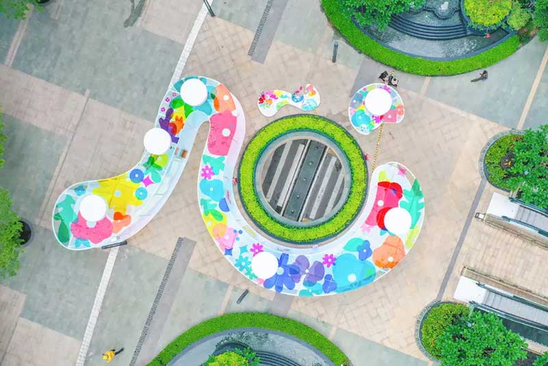 初夏时分的南宁万象城,一处独特的「繁花之境」悄然出圈。与“色彩艺术家”董瑾共同创作的「与光·慢慢 TAKE YOUR TIME」大型公共艺术装置,将长期置于南宁万象城L3幸福广场,除了为大众提供休憩的社交场所,亦赋予公共艺术空间,更多斑斓想象。