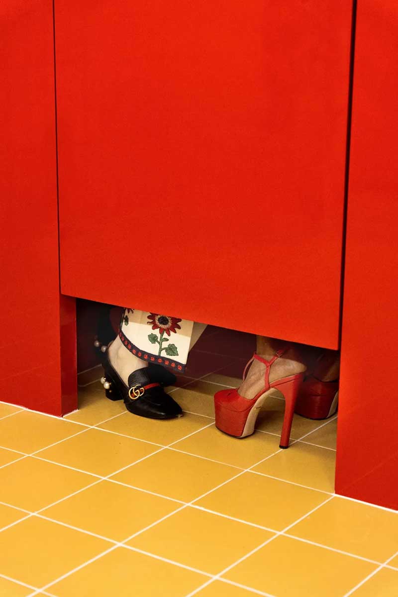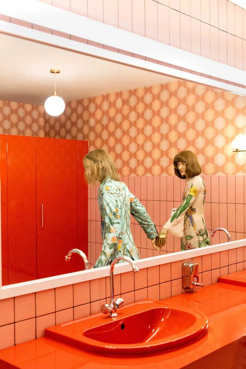在柏林风格俱乐部的盥洗室里感受都会氛围中的自由与叛逆气息,人体模型再现Gucci 2016春夏广告形象大片,柏林野兽派的浪漫文艺,与周遭环境产生诙谐有趣的反差,极具当代艺术魅力的展厅成为人气打卡点。