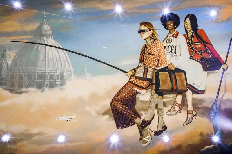 奇幻乌托邦以覆盖墙面与墙顶的巨型壁画,重现2018春夏大片中的超现实古驰幻境。艺术家Ignasi Monreal细腻写实的数字创作手法,生动描绘出传说中的超现实古驰幻境,解锁更高维度的感官体验。