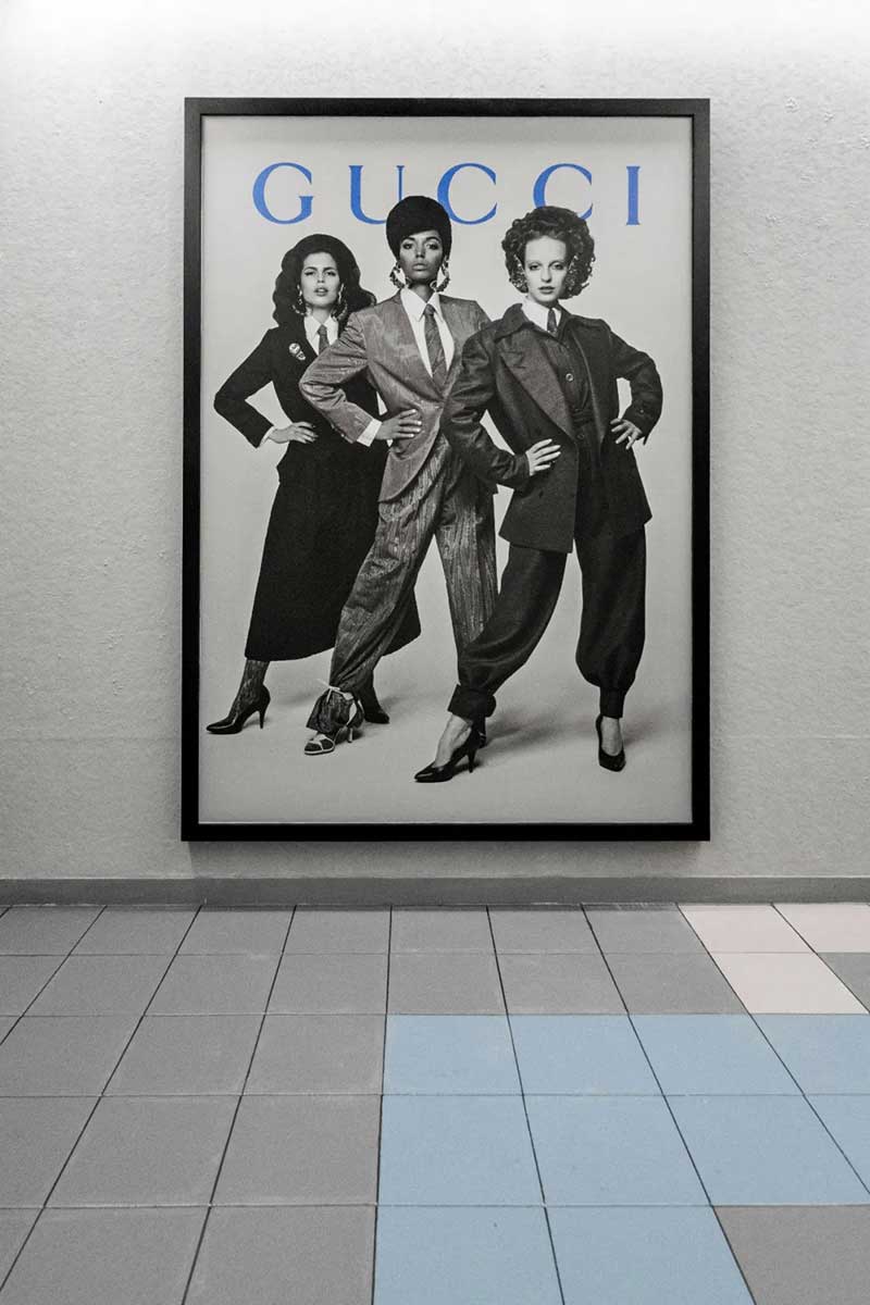 1950年代到1980年代四十年间。是高级成衣的黄金年代。Gucci 2019秋冬广告形象大片,揭示将时装设计的流程真实地亮相台前,通过巨型广告牌与灯箱表达对时装秀仪式的颂歌。