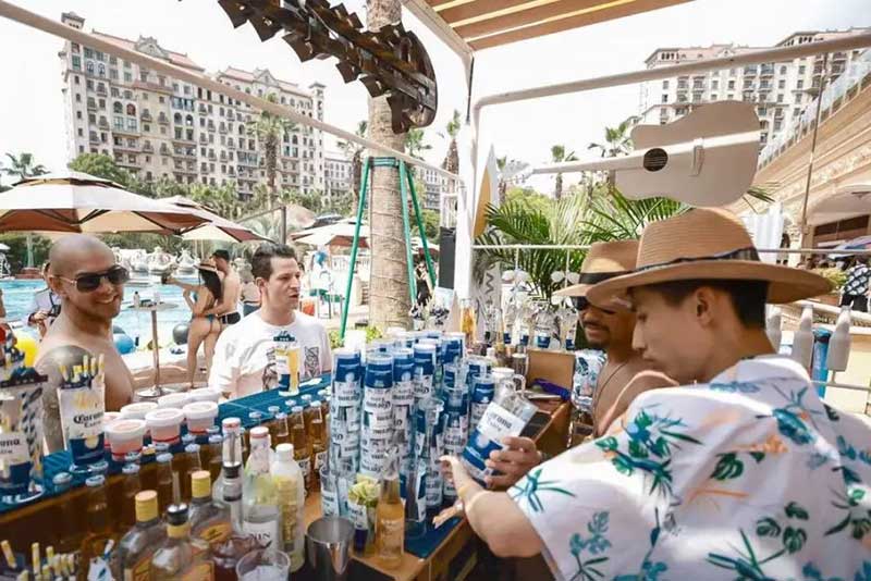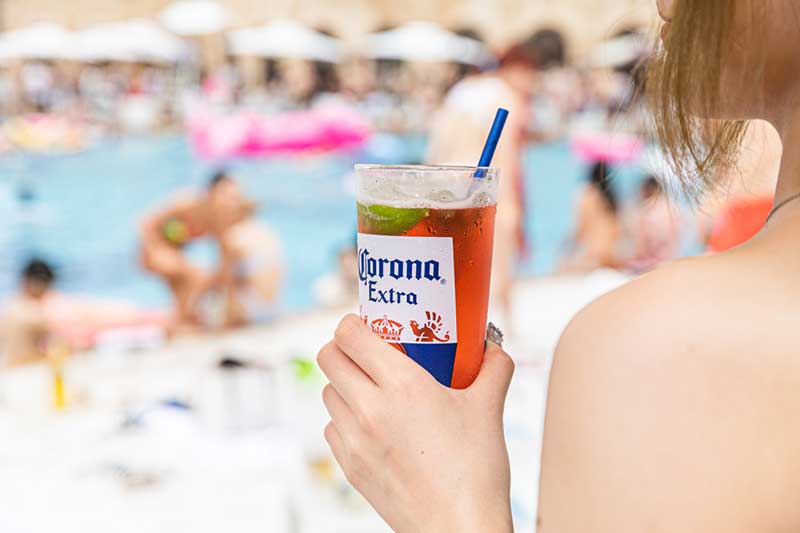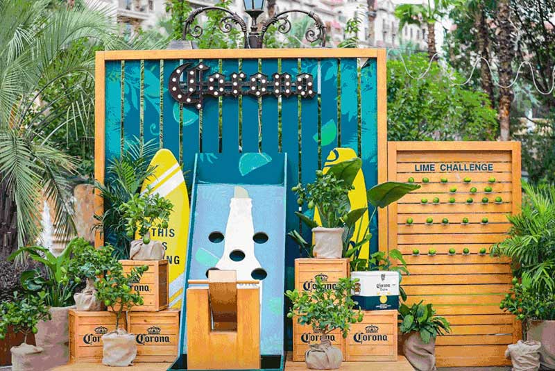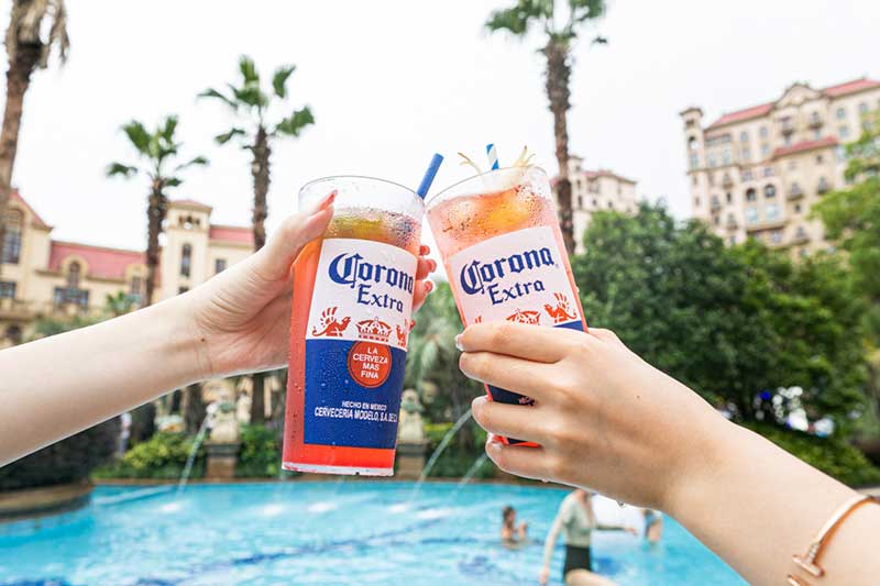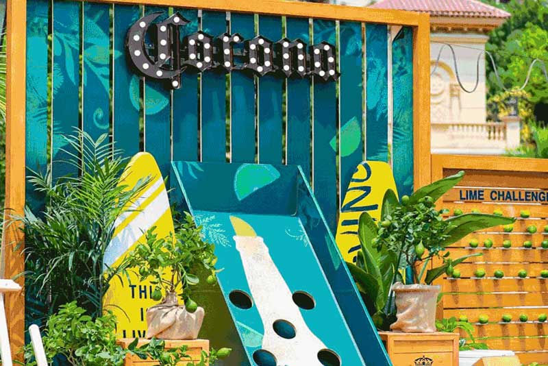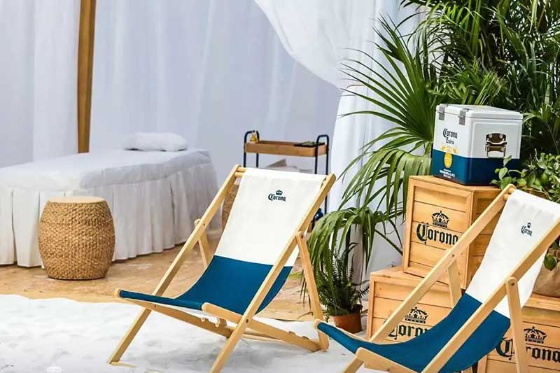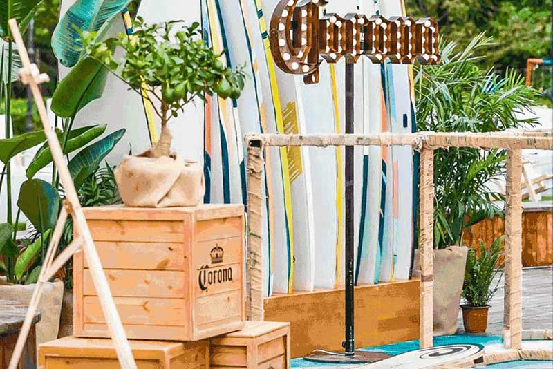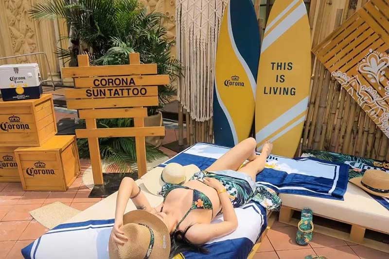 玩穿越,那就要动真格的,科罗娜海边派对和度假feel带到了市区,棕榈树、冲浪板、打碟台、太阳门,一踏入现场,海岛气息扑面而来。劲爆热辣的派对达人集结于此,时尚精致、狂野奔放、雅痞格调,总有一款是你喜欢的TYPE。每一秒时间、每一寸空间,律动音乐直击人心,发射快乐讯号,被欢快海水包裹,被欢笑人群淹没。热情喷薄而出,还有饕餮美食,视觉与味蕾也能得到双重满足,浪去海岛度假,身在闹市,心已往远方。拿起水枪热情扫射重拾童年的乐趣,泳池里在高颜值的救生圈上凹个造型,还有众多派对游戏等你激烈对抗。拍照区精美布置,超高出片率,还有衣着华丽的比基尼女神,PO在朋友圈,你就是最潮IN的弄潮儿。蓝与黄的经典撞色,夺目耀眼的视觉冲击,科罗娜的特别休息区让你惬意躺平。