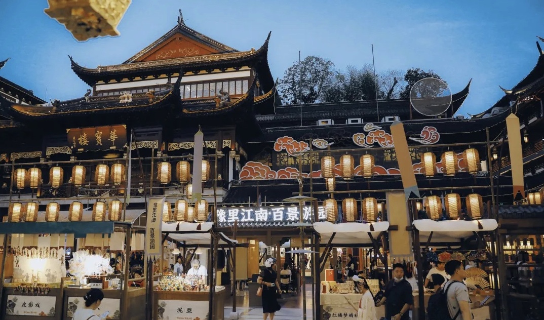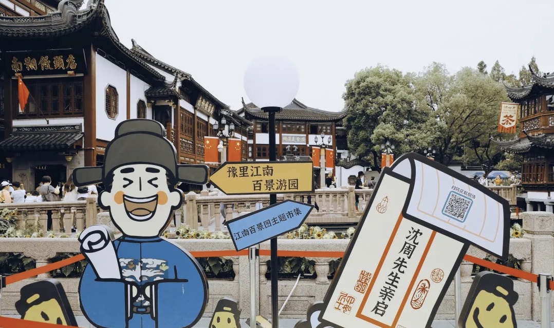 这次豫园x《江南百景图》打造的江南市集,可不止逛吃逛吃这么简单,此次活动糅合沉浸式剧情体验、互动机关、游园解密、国风巡游等特色于一体,通过豫园内多个空间联动,将江南百景图线上游戏场景,还原到豫园商城内,让大家可以一边逛街一边玩一场“线下游戏”!朦胧神秘的剧情明信片、深度沉浸的角色扮演、情意绵绵的祈福墙……更有《江南百景图》官方NPC陪同相伴,开启一场奇趣旅程。