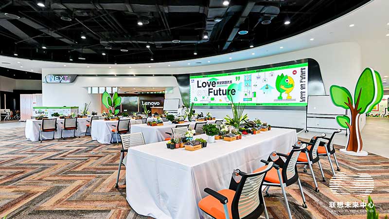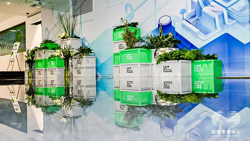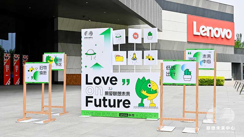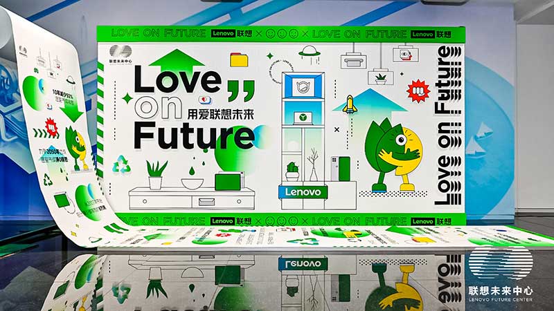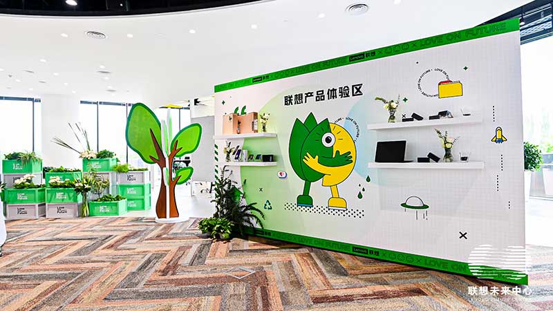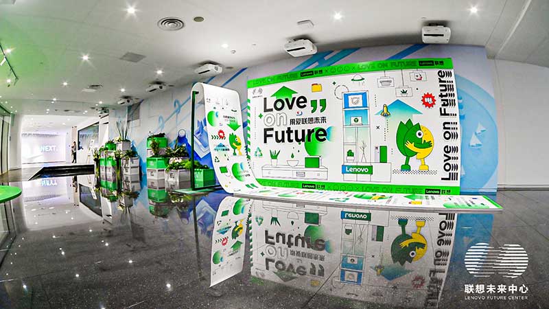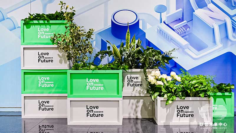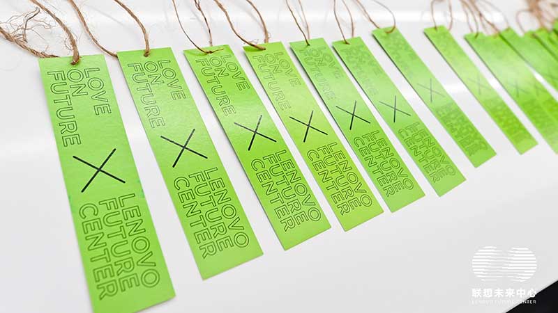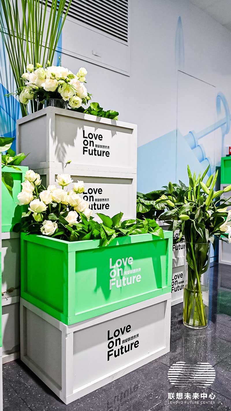 联想未来中心举行了Love on Future「以爱·置爱」公益拍卖会,现场布置了很多环保节能的打卡拍照点外,现场还提供不同颜色的丙烯颜料,可以自己用铅笔绘制图案,再涂色进行创意绘画。