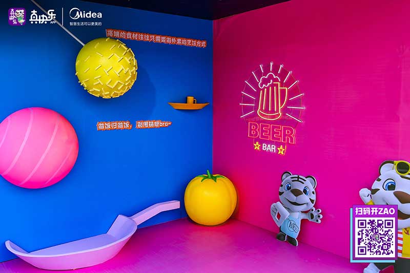 2021国美快乐ZAO城济南站活动现场,玩家们纷纷投入各个ZAO动站区域,亲切可爱的美食站大叔,清凉舒爽的荣耀、美的多个电器品牌集装箱区,寄予人生理想的躺赢、奋斗打卡照相地,国美电器四楼室内还设有网红直播与亲子互动专区。活动当天,更有众多游戏区域等消费者们前来探索。
