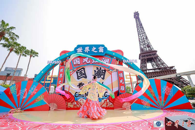 世界之窗国潮风高能开启。“国潮GAI世界”晚会众星云集、聚集众多国潮圈大咖的国风大咖秀、传统现代交织的国潮电音狂欢夜、全新烟花之舞,精彩纷呈国风江湖秀、打卡必选国潮小镇,以及国风韵味满满的商周舞蹈、民国走秀,国韵大秀《凤舞东方》、国风盛典《盛世纪》等活动精彩层出不穷、令人应接不暇。盛大的狂欢巡游将在世界广场与市民游客开启近距离互动,鼓乐齐鸣、载歌载舞,中西文化在这里交汇,国风魅力尽数呈现,打卡巡游,领略世界国潮风极致绽放的魅力。狂欢国潮电音,赏全新烟花之舞,中国制燥,火爆上演!夜幕下的铁塔,传统文化和潮流电音正激情碰撞;用音符,传递大国文化的潮流和气势;以国潮,打造电音新纪元。