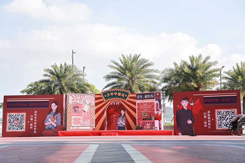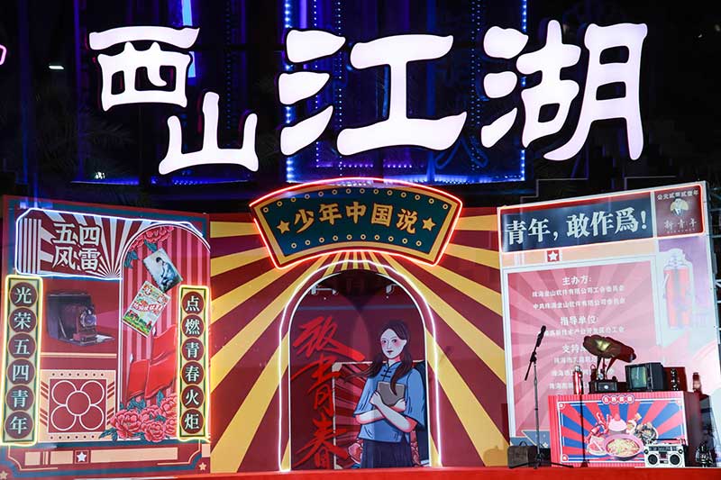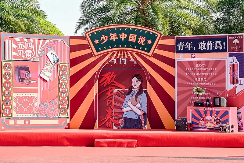 在金山软件园区开启了不一样的党史学习新方式—金山五四嘉年华“少年中国说”主题活动。活动分别在四个场景同时进行,以沉浸式的场景还原,丰富活动内容。党史学习“课室”搬到了户外,“李大钊”面对面讲党史,让参加活动的金山员工兴奋不已,大家聚精会神地聆听这真实再现的演讲。在成果展示区,通过邓稼先、袁隆平、莫言等各领域代表人物的爱国先进事迹展示,激励广大群众爱国奋斗精神。在中心舞台,主持人邀请观众上台分享自己对学习党史的心得体会,对青年该如何弘扬“五四”精神、中国共产党的“七大精神”的感悟理解。在少数民族风采展示区,不仅可以看到中华大地各民族着装展示,中华民族一家亲的美好场景,还可以欣赏中国传统民族葫芦丝、马头琴的精彩表演。歌曲表演《爱我中华》将活动现场氛围推向高潮,声声入耳,句句入心,抽象表现民族团结的力量,中华民族大团圆的和谐之美。