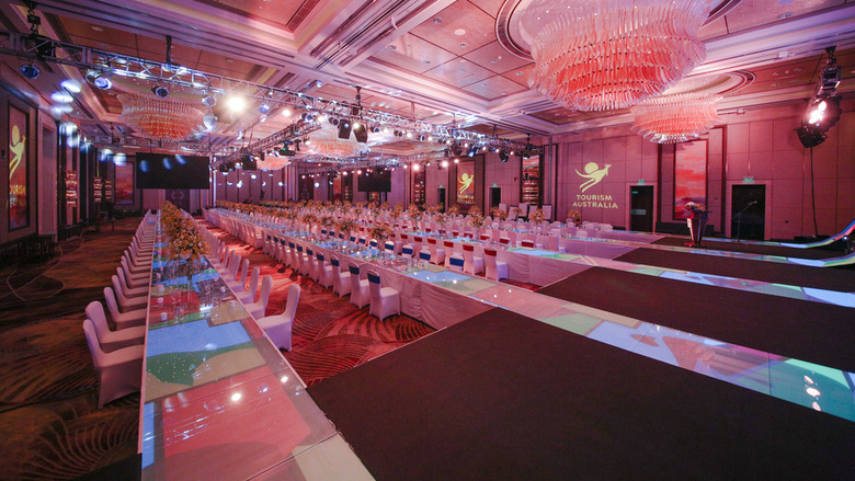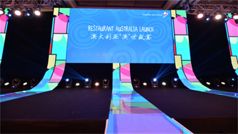 不同于普通的宴会厅的场景,此次上海“澳世盛宴”的活动为参与活动的客人们设计了独特的体验,现场使用了超过900块的LED屏幕,覆盖了238平方米的面积。整个晚上,客人们都沉浸在澳大利亚精致美食之中,餐桌面的LED屏播放展示了澳大利亚的美丽风光与魅力,这一创意的设计提升了活动整体的体验感。