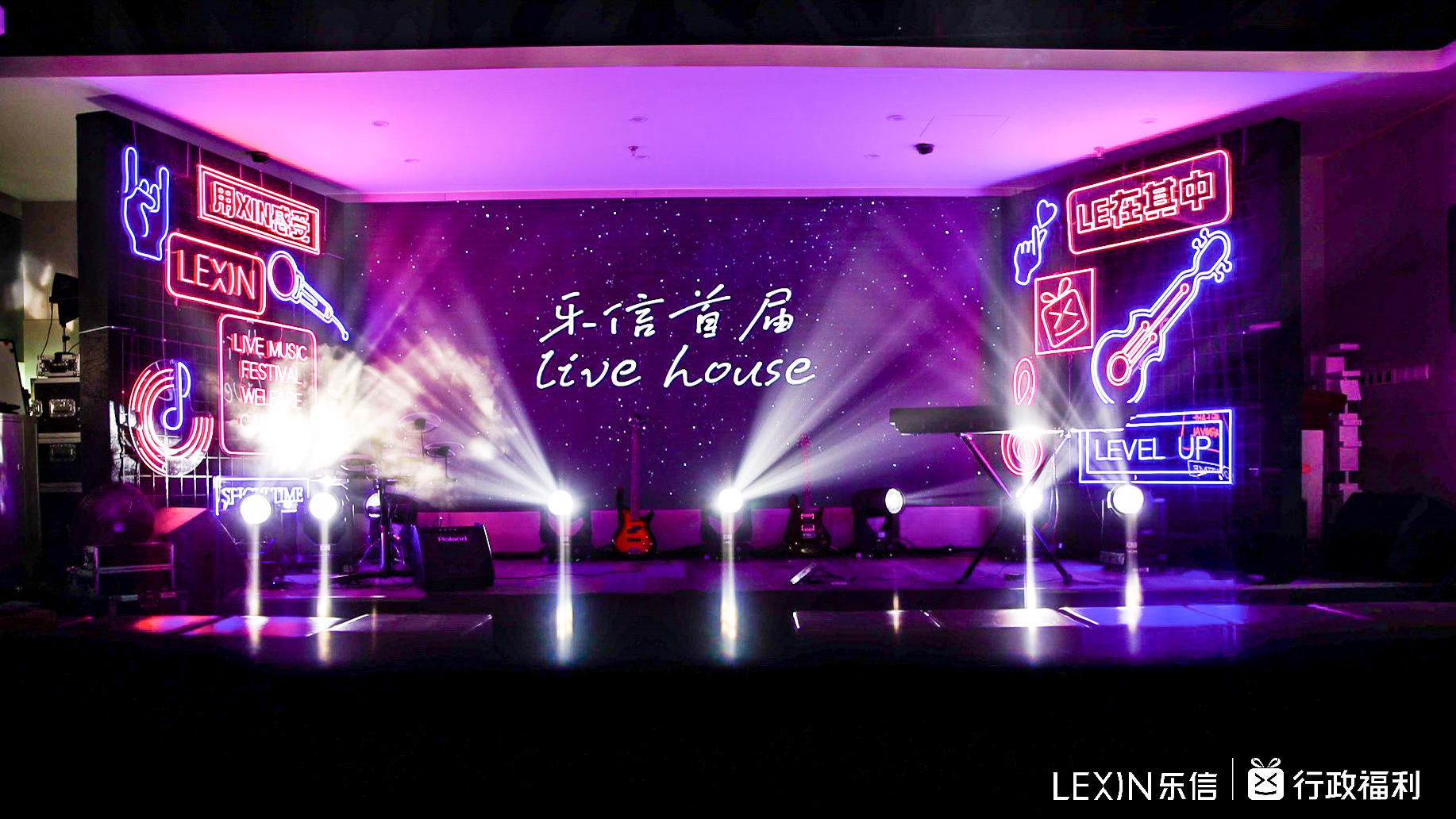 深圳乐信控股有限公司举办“乐信福利嘉年华暨乐信首届live house”活动。作为公司行政部门主办的福利活动,现场以潮酷、年轻的元素营造潮流live氛围,酷炫的灯光和沉浸式音乐现场,让员工们尽兴玩耍,过足”星瘾“。