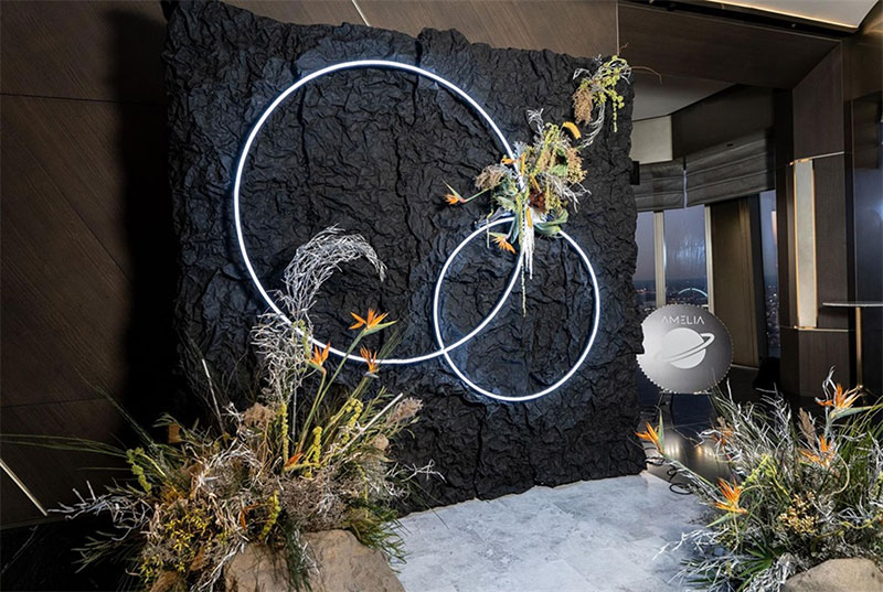 派对以月球作为活动主题,设计师对现场进行了主题设计,主题照相背景更容易让人联想到月球。