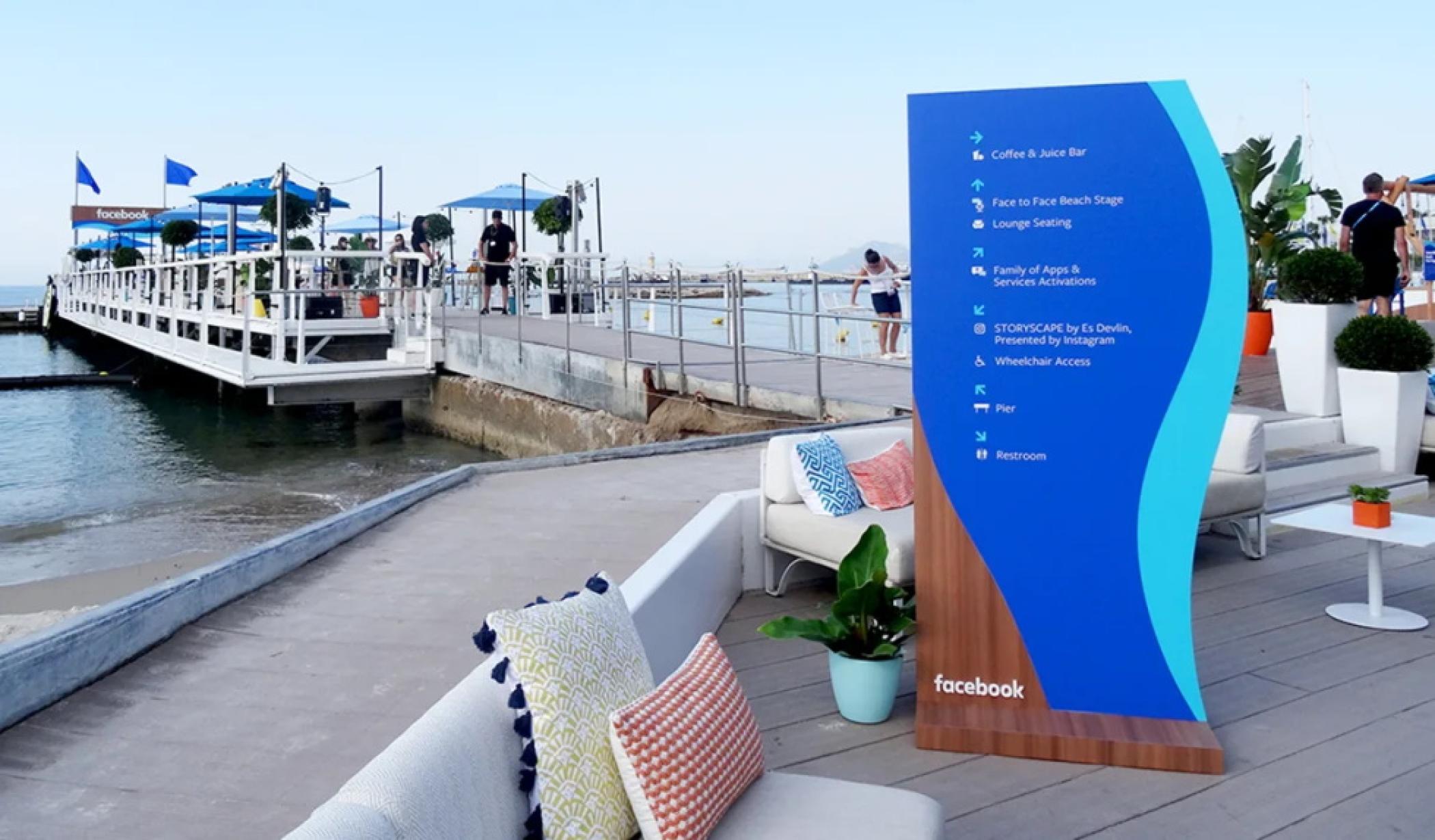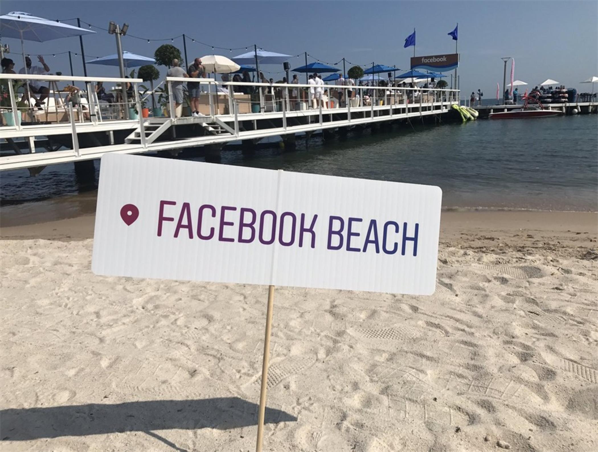 在戛纳国际创意节上,脸书(Facebook)租用了一个码头和海滩,搭建了Facebook海滩,旨在吸引全球创意人士,这是脸书(Facebook)每年最重要的活动之一。