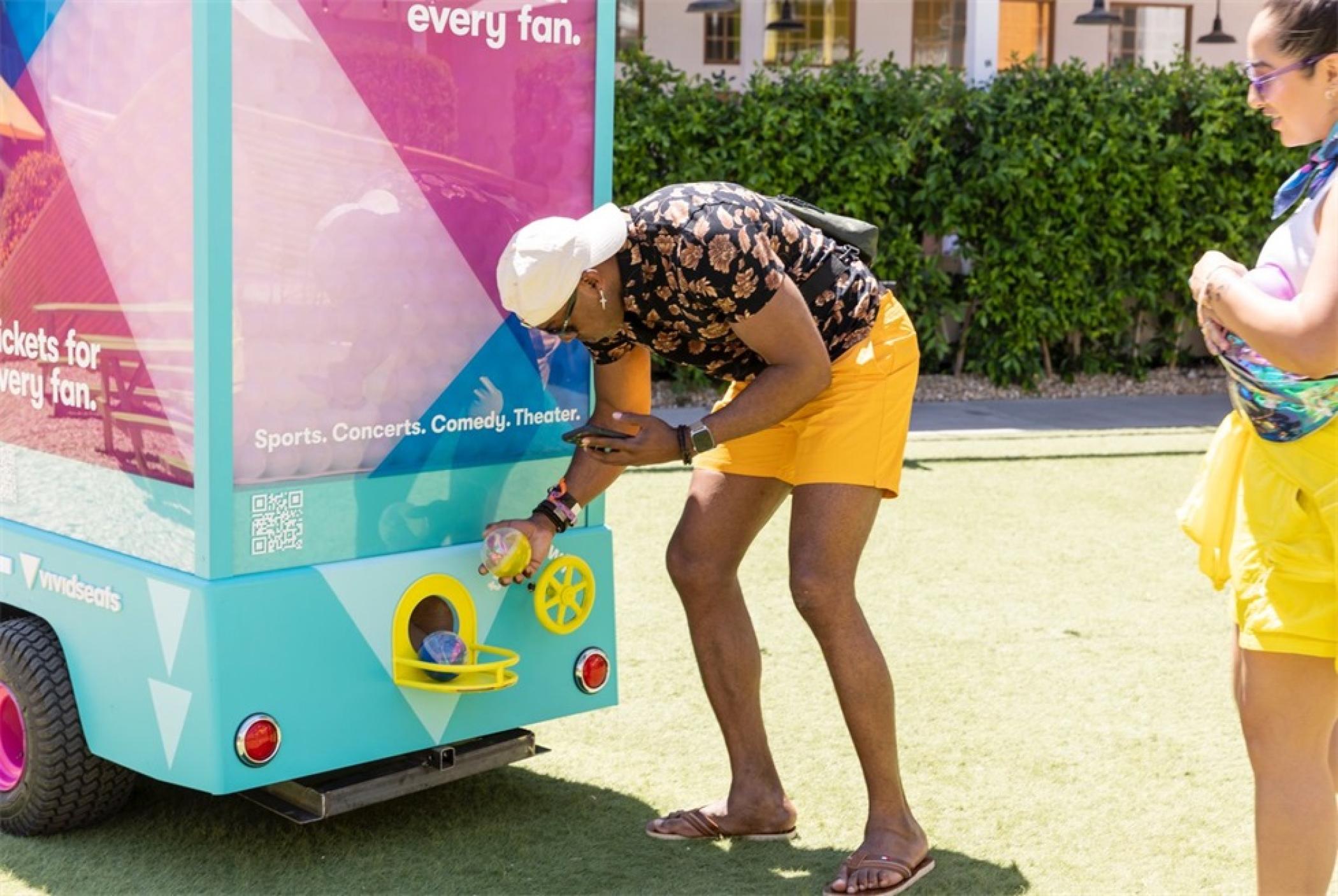 “幸运滚轮”的设计初衷是为了在科切拉音乐节、BottleRock、非凡音乐节和奥斯丁城市音乐节等流行音乐节上为Vivid seat提供互动品牌体验。20世纪50年代的高尔夫球车被重新设计成Vivid seat品牌的“幸运滚轮”,一个超大的自动售货机内置在后面分发有趣的节日礼品,如:头巾、腰包、太阳镜,以及粉丝在音乐节中升级为VIP的机会。路过的粉丝只需要扫二维码下载应用软件就可以参与抽奖活动。