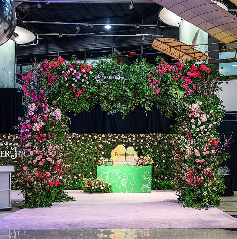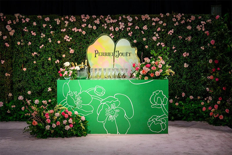 巴黎之花(Perrier Jouet) 是一种葡萄酒的品种。巴黎之花香槟酒庄以酿造细腻雅致、花香馥郁的霞多丽香槟著称。巴黎之花在美国超级碗品牌体验派对现场的鲜花拱门与草墙成为了活动的特色,为客人们提供了充满活力的拍照背景。