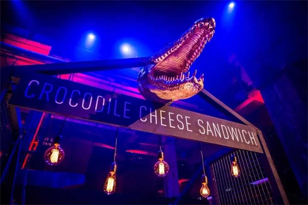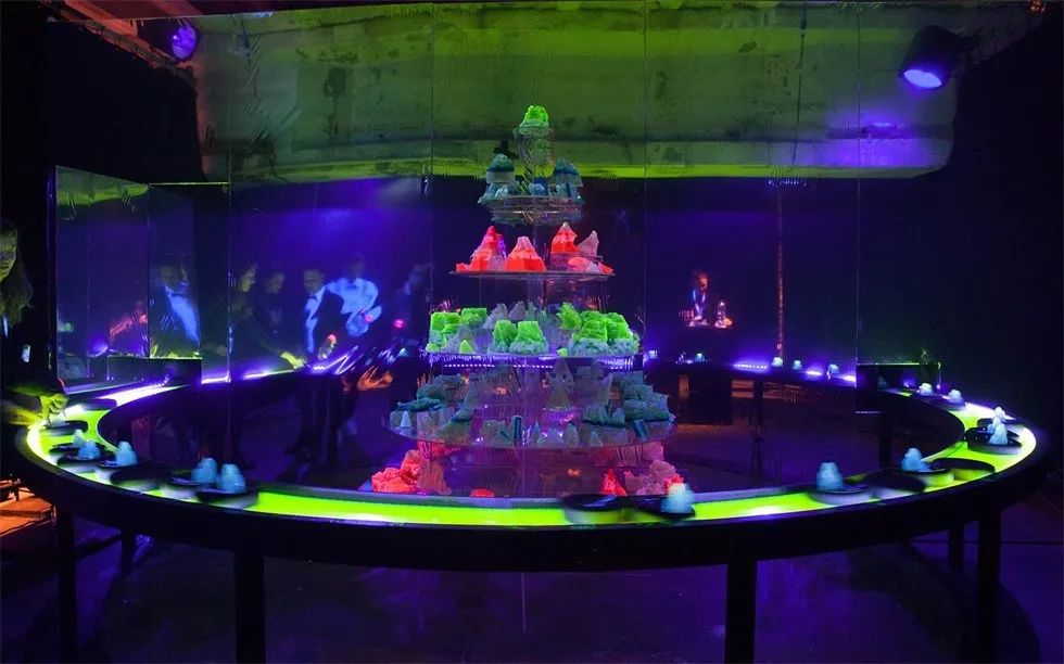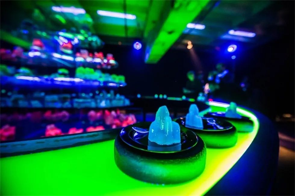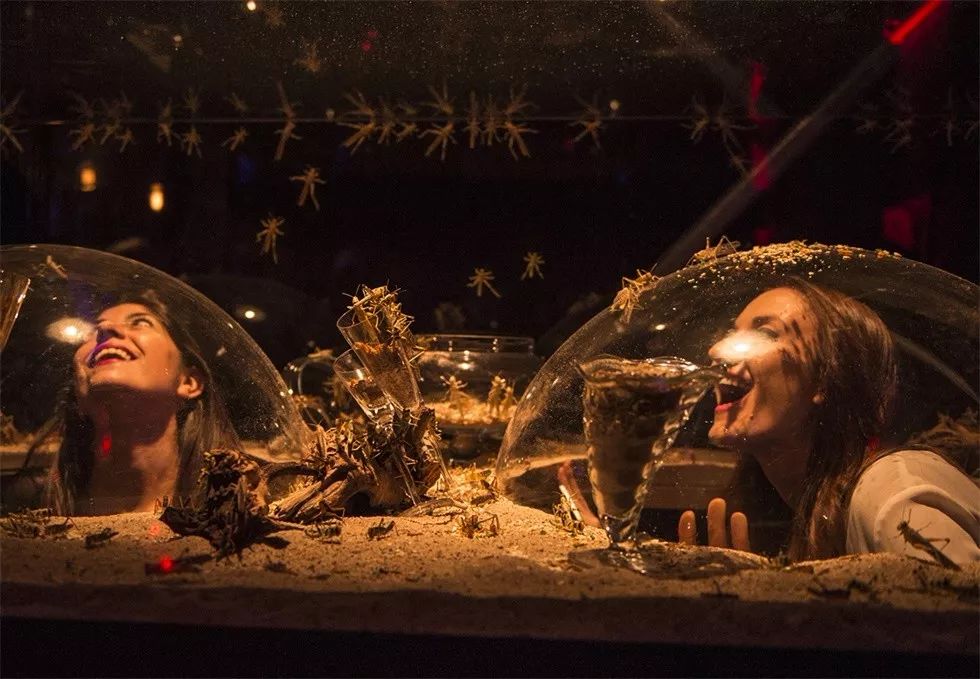 在这里来自英国的食品供应商“邦帕和帕尔”创造了多项世界第一比如:饮料都被雷击过的酒吧,可食用的软体动物花园,被盛放在小河里的发光果冻,鳄鱼三明治吧,用喷火器做的披萨等等。还有山姆·邦帕斯和哈里·帕尔以被装在了人类头骨中这种奇怪的方式提供定制的含有喜马拉雅山脉矿物的蒸馏酒。