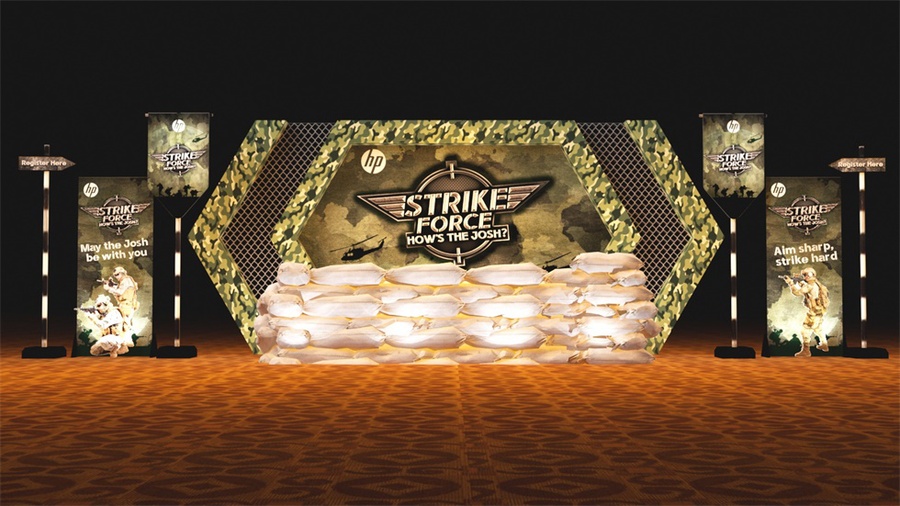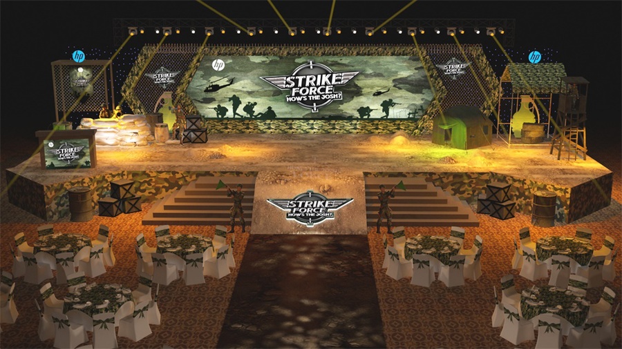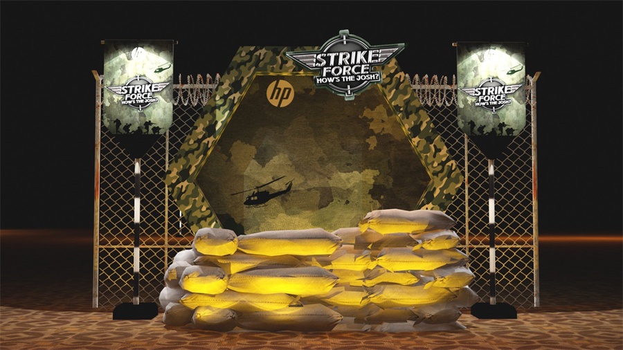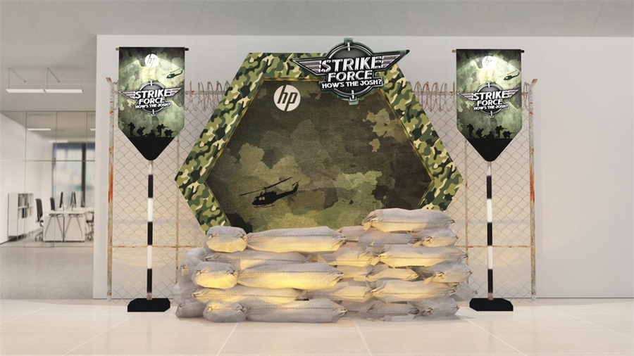 惠普的这场以军事主题宴会活动策划现场,满满都是各种各样的军事环境,仿佛置身于吃鸡游戏,在这里没人能帮得了你,一切只能靠自己,拿出你的男人气概,挑战自己吧!GOGOGO!