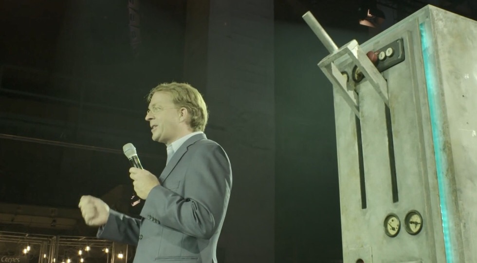 派对地点是在一座已经关闭的发电厂,它为喜力“动力之城”的活动提供了一个恰到好处场景。正如尤尔根所指出的:“我们提供了灯光、索具、音响、视频和装饰。”客人们通过一个模拟的隧道进入现场,迎接他们的是闪电,雾和工厂里的地狱般的喧嚣氛围。表演以同样令人印象深刻的形式拉开了序幕——使用声音和频闪效果模拟停电。喜力首席执行官致开幕词后,艺术家们再次通过C1升降机飞上天空,展示他们的空中特技。大约20名鼓手敲出有节奏的韵律为空中表演伴奏,舞者们则在地面上昂首阔步。在空中表演之后,三位歌剧演员高唱了冠军联赛的主题曲。歌手被C1型升降机从地面升起,盘旋在观众上方。在最后的压轴环节,喜力那颗闪亮的星星冉冉升起。它是一种LED镶嵌的钢结构。活动现场另一个令人印象深刻的道具是一个9米长的闪电,由铝制成,上面覆盖着闪烁的LED灯条。最后,真正的冠军联赛奖杯升起,所有的光束灯一起射向它。