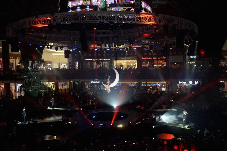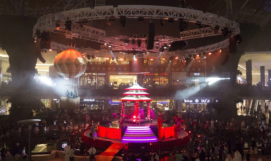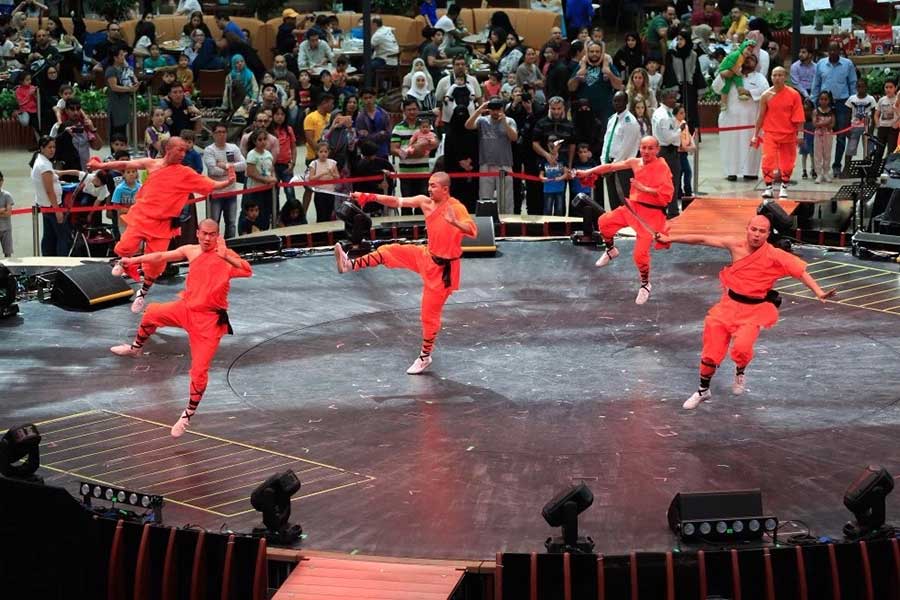 卡塔尔购物中心开幕式当天,有超过15万名游客前来观看盛大的开幕式,200多名才华横溢的艺术家参加了20多场遍布在购物中心的表演,行走的特殊表演和非凡的庆祝活动使用了大约300,000个气球现场来宾们被国际著名跨界演唱组合Il Divo美妙的歌声和高超的抒情技巧所感染。除了国际知名美声组合令人难忘的表演,舞台演出了包括少林勇士——20多位功夫大师展示了非凡的技能,体现了一千多年的中国武术文化。恐龙动物园的现场表演最令人惊讶的是栩栩如生的恐龙在人群中的行走互动和其他“动物”在舞台上表演。整个商场的表演还包括树行者、气球龙和鲜花游行。带有孩子的家庭还在商场里体验了惊险刺激的儿童气球之旅。此外,MOQLIVE以其令人着迷的现场表演让观众惊叹不已。