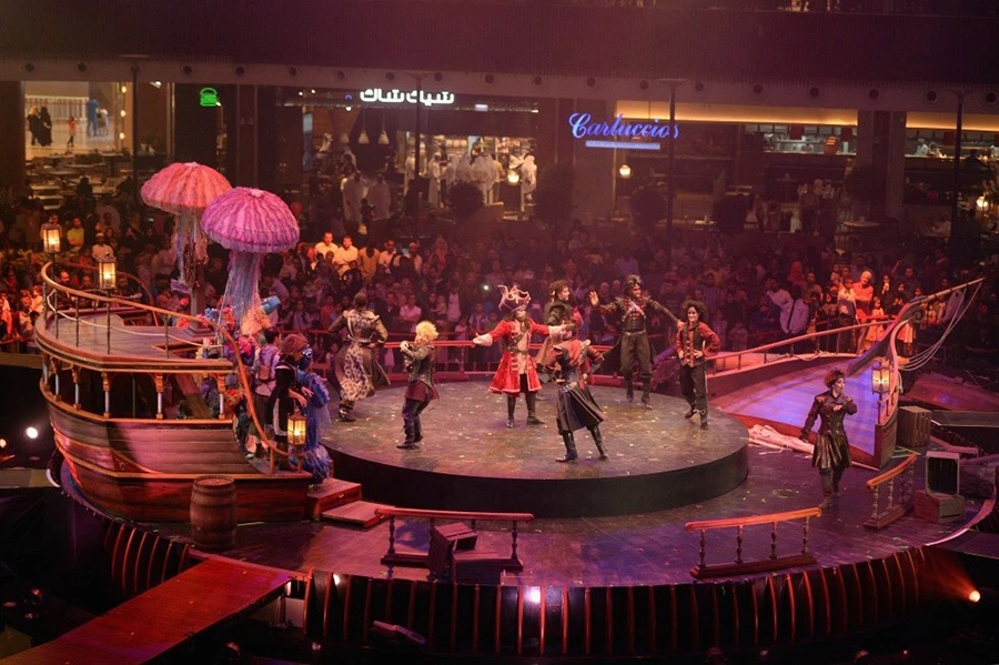 卡塔尔购物中心的绿洲是一个沉浸式娱乐的来源,设计精美,以壮观的现场表演吸引观众。绿洲让购物者进入另一个世界,具有变革性的灯光和音响设计,让观众们从各个角度都能感受到眼花缭乱的视听效果。它的360度旋转剧场舞台是购物广场体验的核心,让消费者在一个购物中心内体验世界上第一个商场内360度专业剧场不可思议的视听感受,这里有定制的演出,其规模是前所未有的,并拥有一个专业的常驻演出团。多达25名舞者、歌手、演员和杂技演员可以随时进行现场表演。