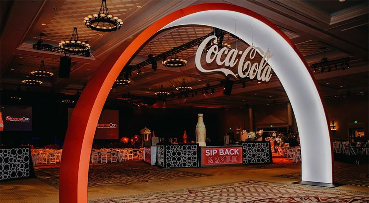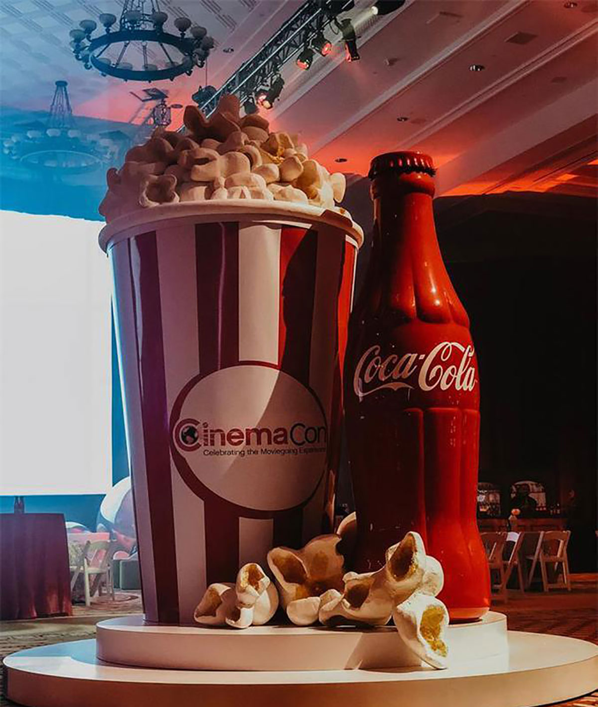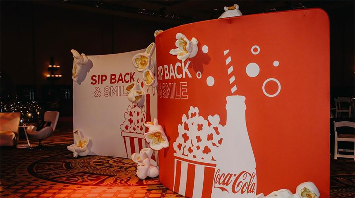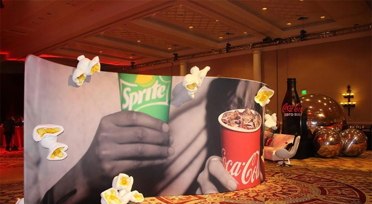 在2019年内华达州拉斯维加斯电影博览会的最后一天晚上,可口可乐的活动团队举办了一场鸡尾酒派对,此次派对策划设计了很多大规模的社交媒体拍照打卡背景,各种超大规模的定制道具,包括各种创新创意点,都是为了将客户的品牌更好地呈现出来。