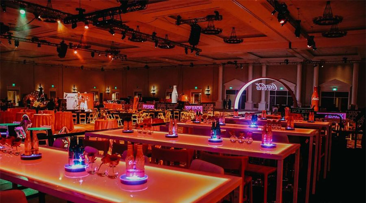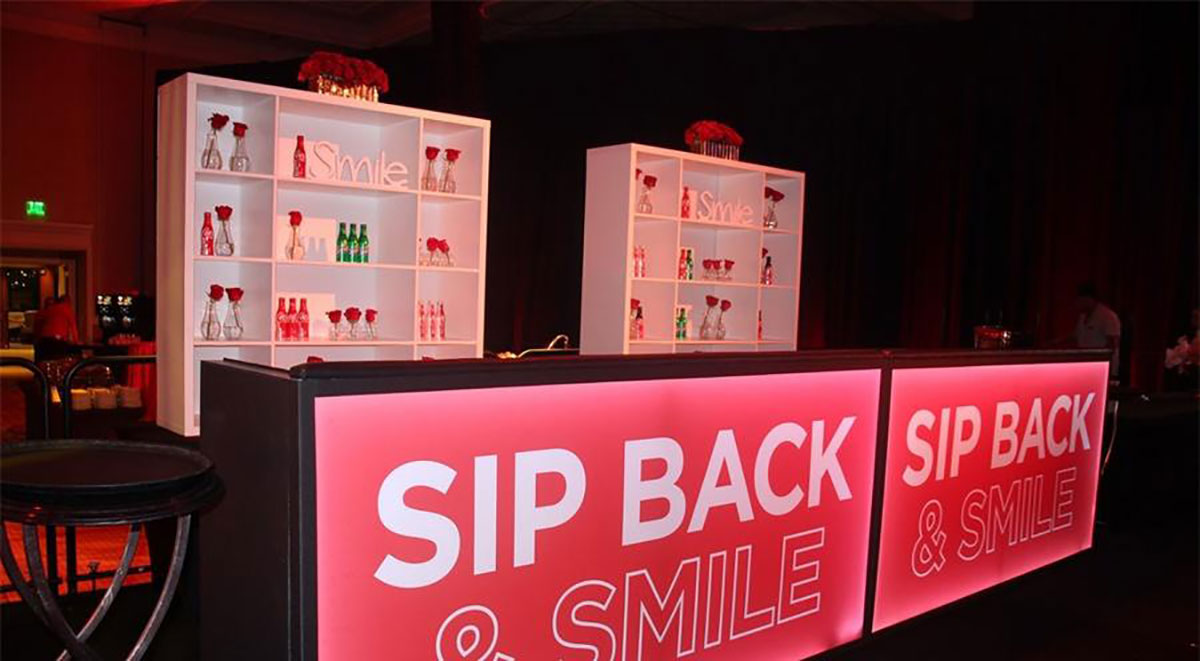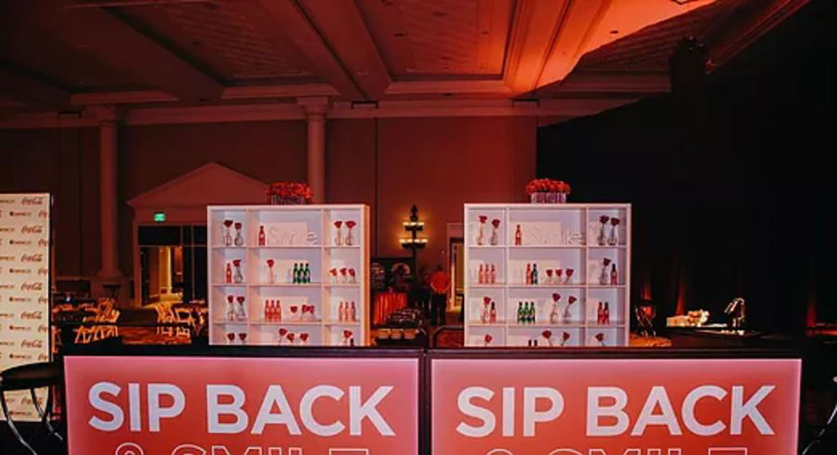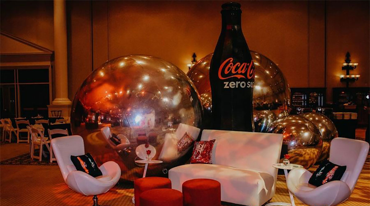 在2019年内华达州拉斯维加斯电影博览会的最后一天晚上,可口可乐的活动团队举办了一场鸡尾酒派对,此次派对策划设计了很多大规模的社交媒体拍照打卡背景,各种超大规模的定制道具,包括各种创新创意点,都是为了将客户的品牌更好地呈现出来。