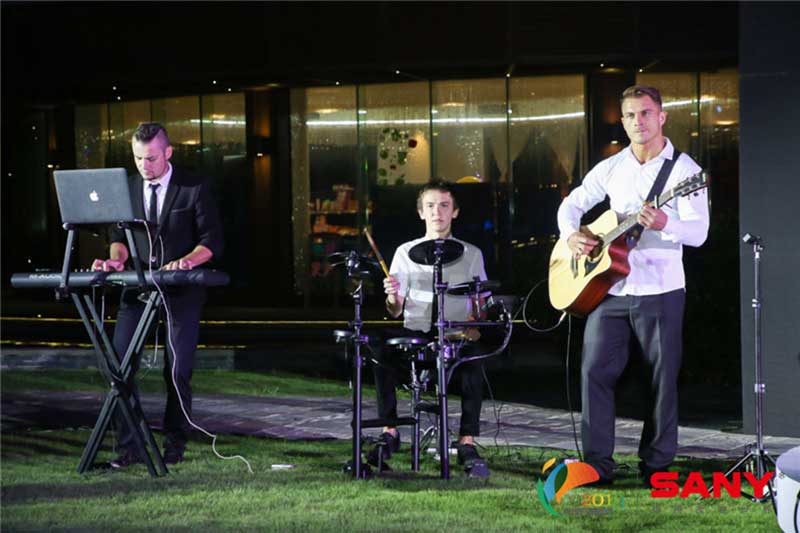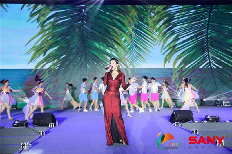 晚间,壮丽的三一红点亮夜空,红毯及签名墙上,来宾们纷纷留下了专属自己的三一印记。联欢环节,精彩的开场舞及歌曲将热带风情展露无余,劲爆的摇滚乐、惊艳的杂技、热辣的维密秀让活动现场掀起一波又一波高潮。随后星光大道冠军歌手旺姆及实力歌手容中尔甲的惊喜亮相,更是将现场瞬间点燃。