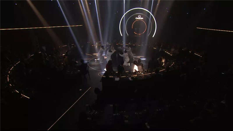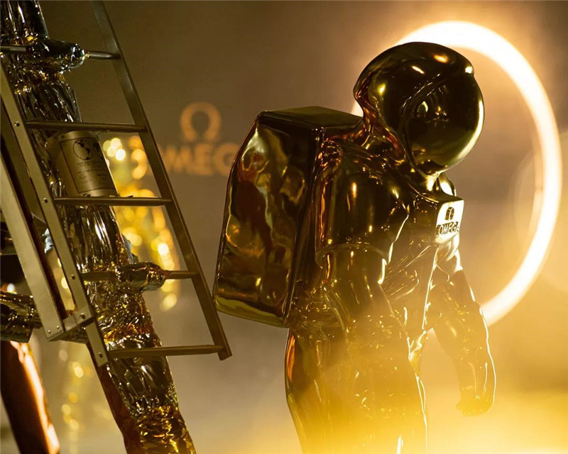 随着音乐和灯光瞬间变化,客人们被召唤到一个被星星环绕的圆形用餐区。璀璨的外太空设计为每个人创造了一个梦幻般的月亮晚餐,精彩的灯光表演开始了晚宴。在灯光和音乐的变化中,欧米茄隆重推出三款新的Supermaster手表,以庆祝首次登陆月球50周年。此外,为了向人类首次登陆月球50周年致敬,欧米茄金色宇航员的巨型雕塑展落在上海静安寺,新天地等地展示。