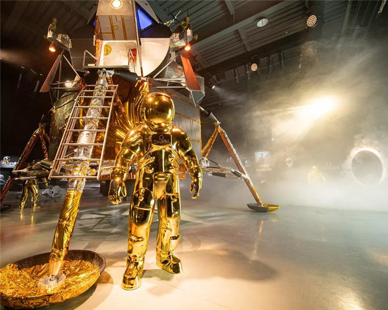 晚餐的场景经过精心细致的安排,利用宇宙的各种元素,仿佛穿过太空隧道,在浩瀚的宇宙中游泳。当晚最大的惊喜是欧米茄精心介绍了阿波罗计划的“飞鹰号”登月舱模型,让客人大饱眼福。