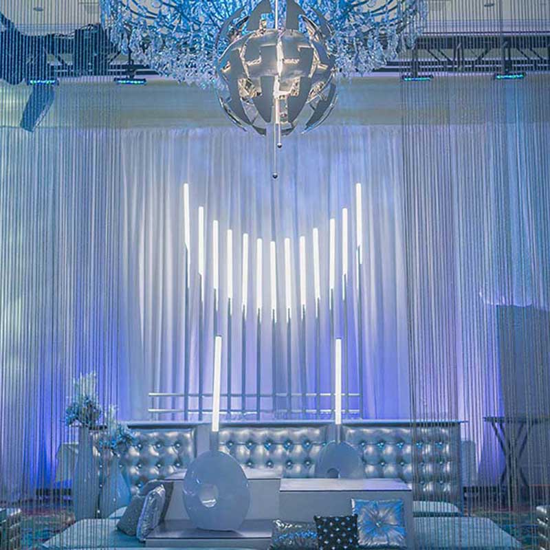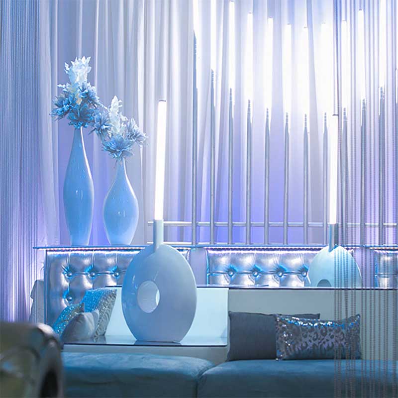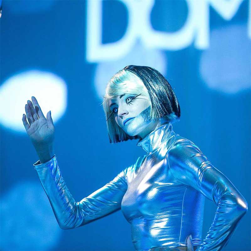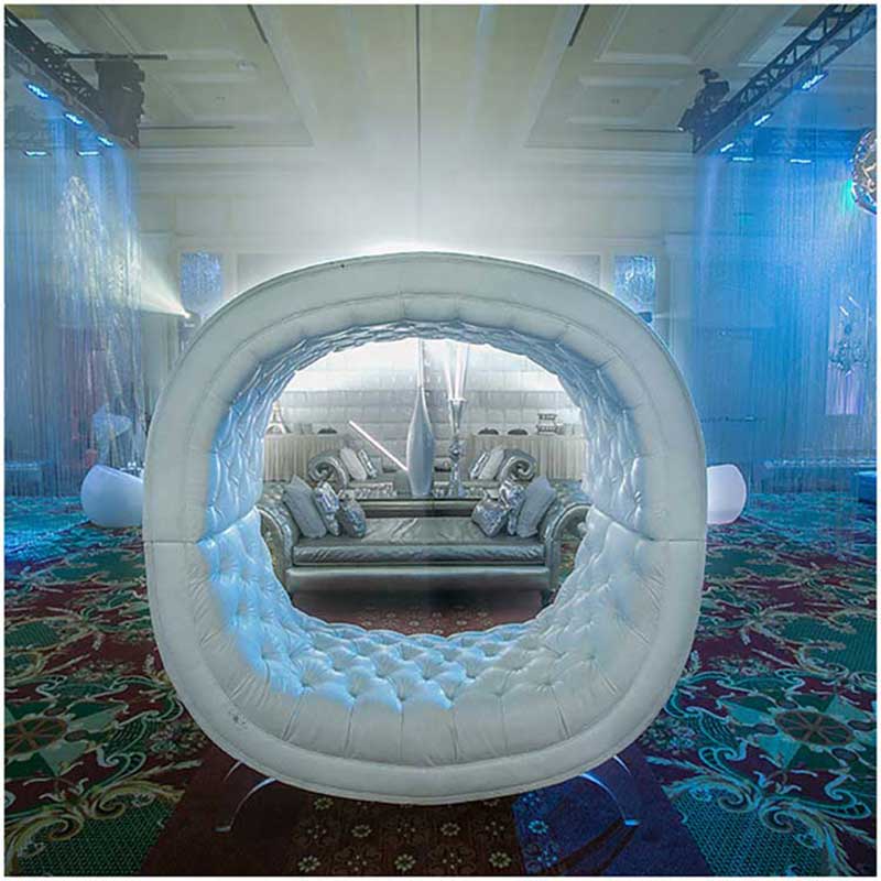 “机器人”模特儿、银色家具,和未来风格的投影图像共同营造了一场未来风格的派对,一场独树一帜的派对活动。Domo想要的是做一些意想不到的事情。大多数人都喜欢惊喜的元素,当然也不会反感能够带来兴奋和惊喜的派对。这个派对的设计特色是:代表未来的“机器人”模特是现场的艺术作品,和整个现场充满的银色色调,每一个细节的设计都是为了营造一种对未来风格派对主题“全身心投入”的氛围。未来的图像和声音使这个空间充满令人兴奋上午印象派的感觉。