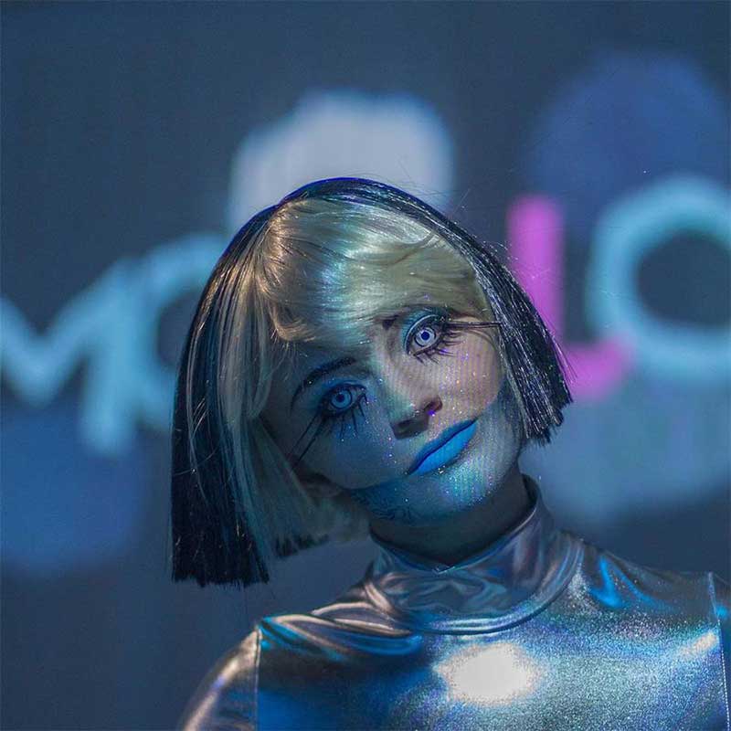 现场精心设计的装饰与视觉元素也让你沉浸在一种未来的体验中,给客人们带来了一点“明日世界”的感觉。派对的客人们会停下来和模特们合影,模特们化上了复杂而抽象的电路板妆容来模仿未来的机器人,甚至在派对的小吃上也精心为客人准备了银灰的蛋白杏仁饼。现场还有可爱的化妆师塔拉·斯特林为这个未来派主题派对设计了一些疯狂华丽的妆容。