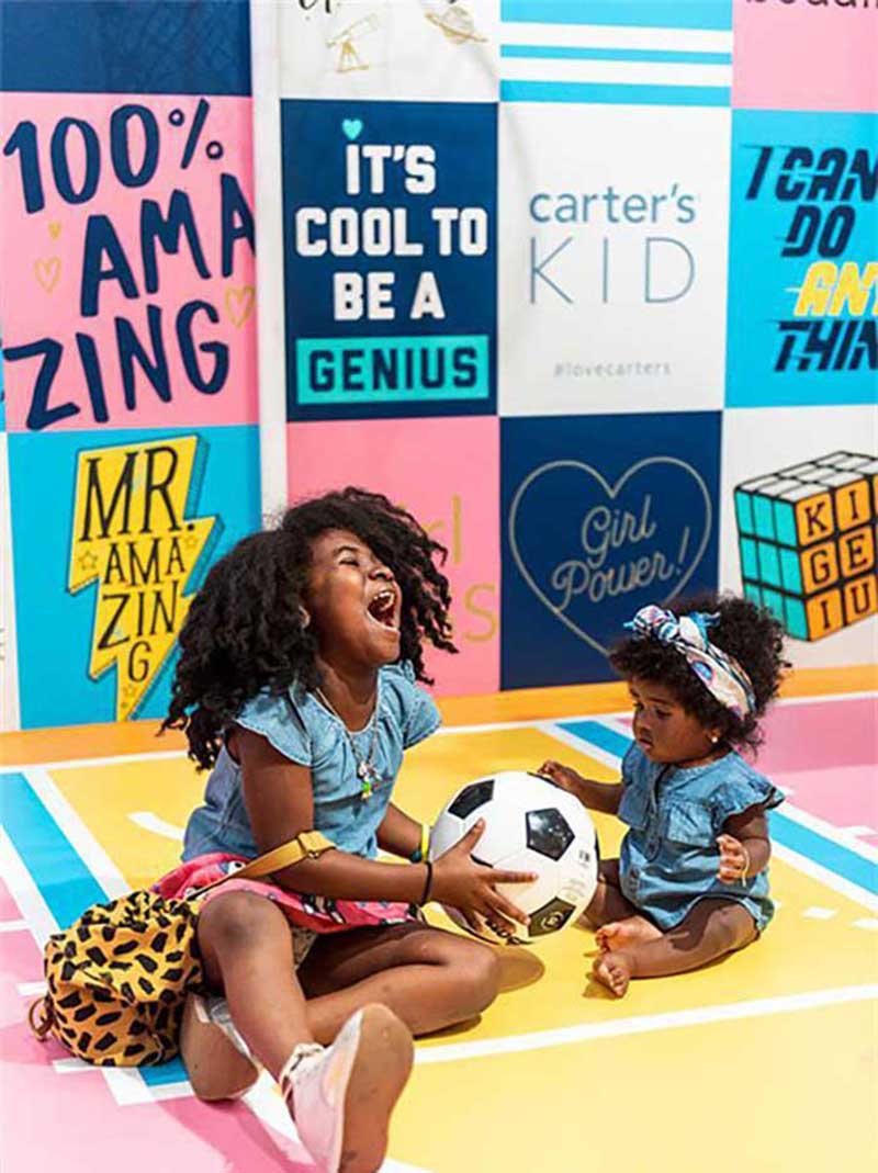 每一个秋季的时尚潮流都被纳入一个充满迷人元素和活动的图片配图,无论是外太空、亮片、迷彩服还是独角兽,每个孩子都有属于自己的Carter’s或OshKosh B’gosh去探索。活动现场闪闪发光的画廊也让客人们看到 Carter’s 闪亮的女孩时装。儿童动力银河公园则是扣篮和充满乐趣的地方,连玩毛绒兔拖鞋都变得没有年龄限制,成为相互追捧的好去处,最后小客人们还可以在“创新奇迹实验室”玩起翻亮片,并探索了3D打印。