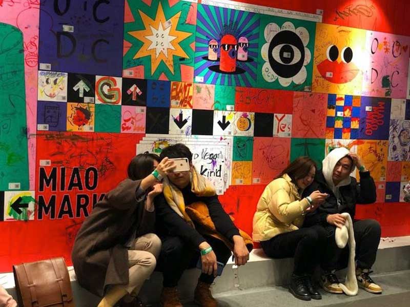 视觉涂鸦、工作坊、舞台音乐表演和展位互动,都成为本场妙会粉丝驻足之处。作为妙会的视觉合作伙伴,OCDC将活动主视觉作为整面涂鸦打卡墙,不少可爱的小姐姐都在这面墙下自拍。不少粉丝也都会亲手体验COLORUMN的印刷工作坊,专业的体验仪器与指导流程,着实让粉丝都过了把瘾。草莓爸爸和LimboLimbs组成的Miao音组合,在这个周末更是给全场带来音乐的活动,展商们在展位也不禁随着超强感染力的节奏晃动起身体!