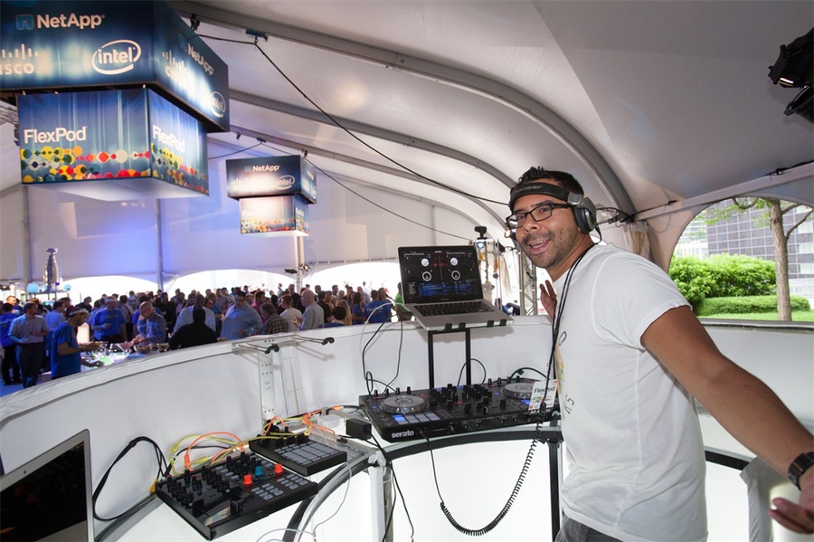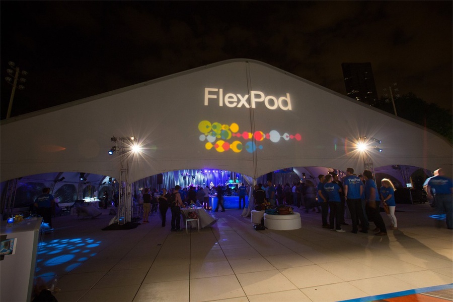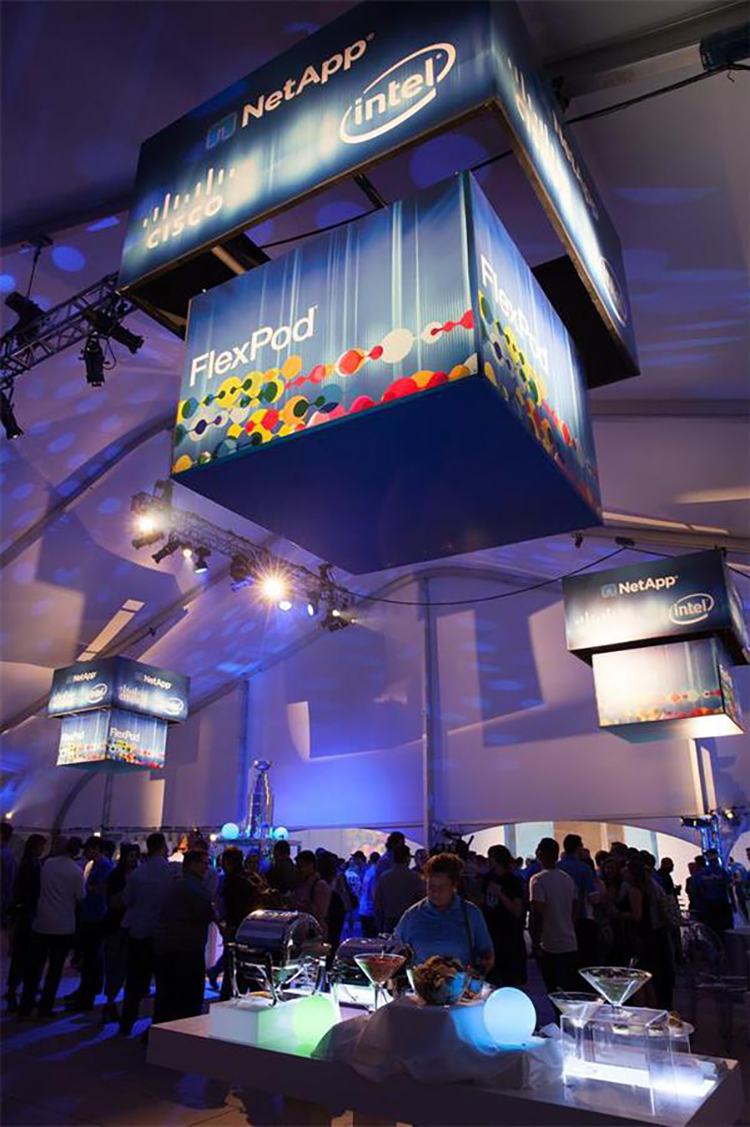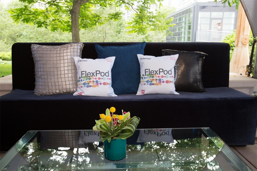 FlexPod的标志和品牌元素被整合到整个活动的所有元素中,包括装饰吊灯、照明、家具组合、鸡尾酒餐巾、主办方提供的T恤、调酒器和气球,创造了一种在活动中近乎饱和的新产品接触点。