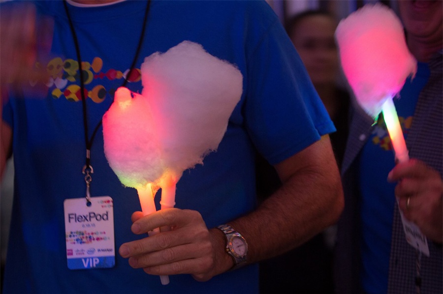 VIP活动的目标之一是创造一个空间,展示FlexPod的品牌外观、感觉和意义,让客人不断参与。“云”技术融入了整个活动中,特别是在装饰和菜单上,“云中美食”的特别创意,在客人到达时提供翻滚的干冰和蓝色玛格丽塔。