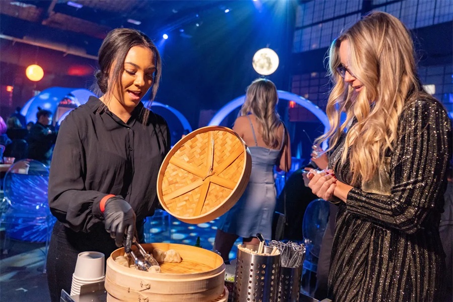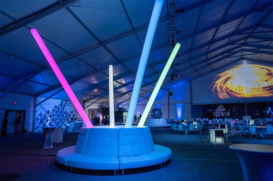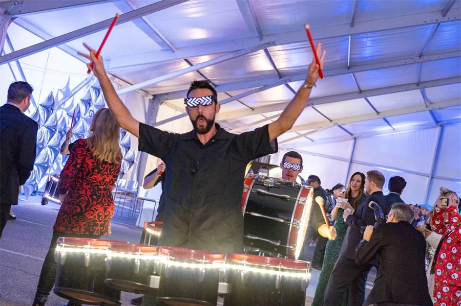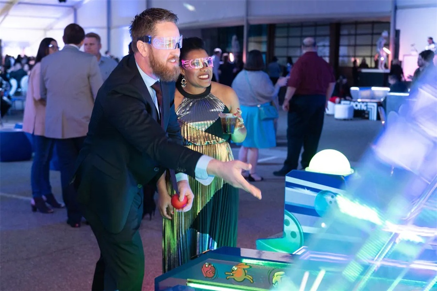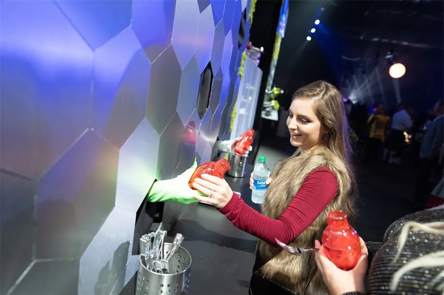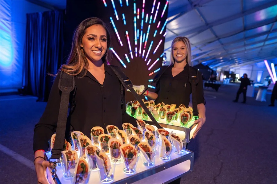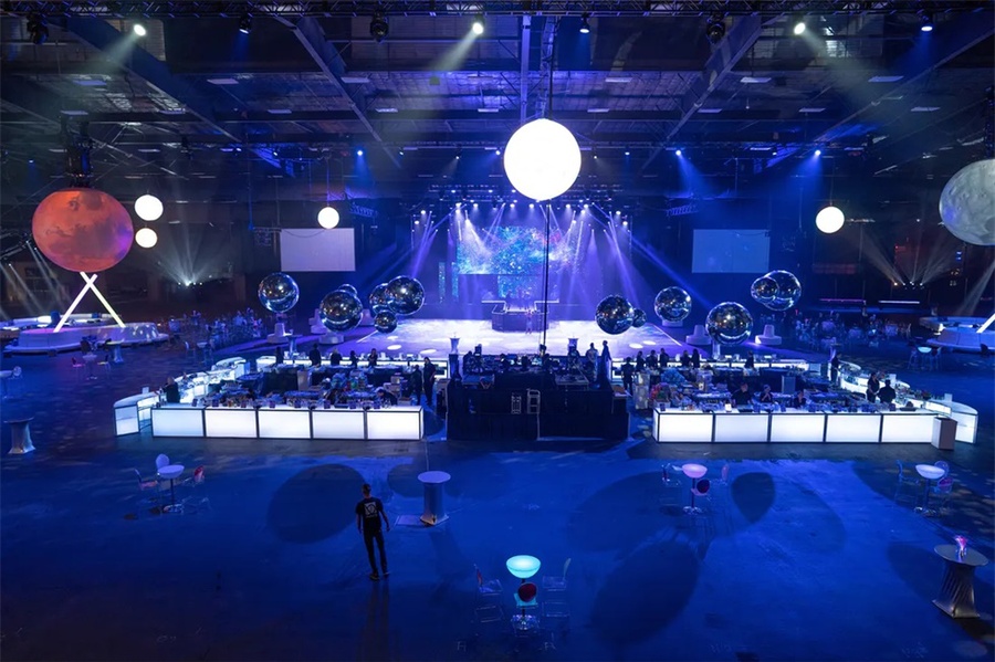 这个以太空为主题的企业假日派对是一个创新的活动,它的发光的细节将客人带到未来。这个活动在斯科茨代尔的西部世界举行,特色是在黑暗中发光,互动街机游戏,和一个可以照相上传社交媒体价值的“光隧道”。公司员工活动对现场的餐饮有较高要求,在这个活动中还邀请了专业的活动餐饮公司对活动中的餐饮进行了策划,推出了全新的生奶酪、未来主义风格的沙拉手墙、点心码头等等。派对活动就是要有创意,还必须有美食方可。
