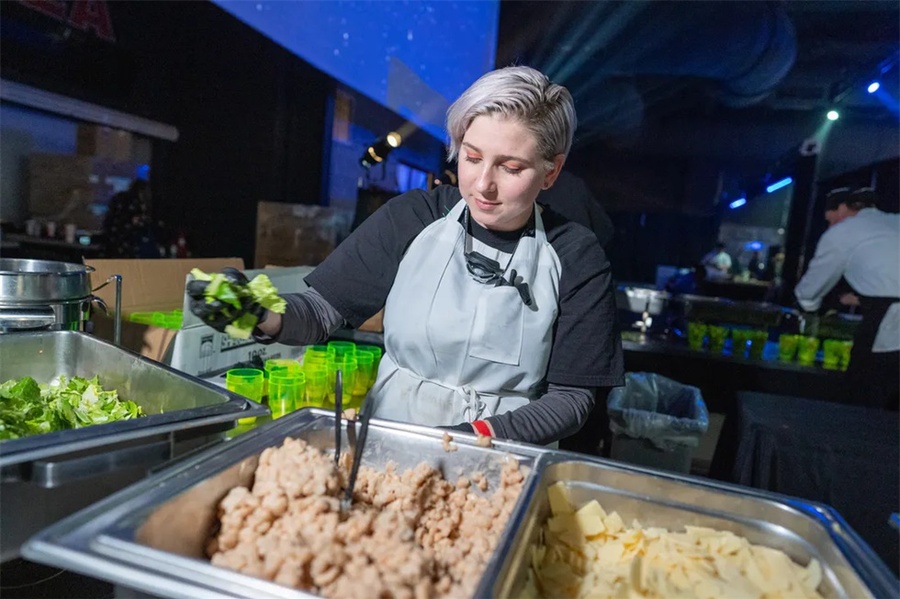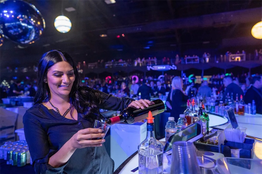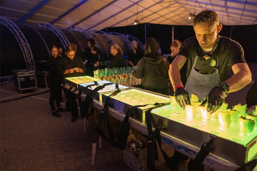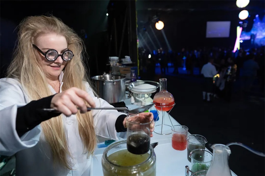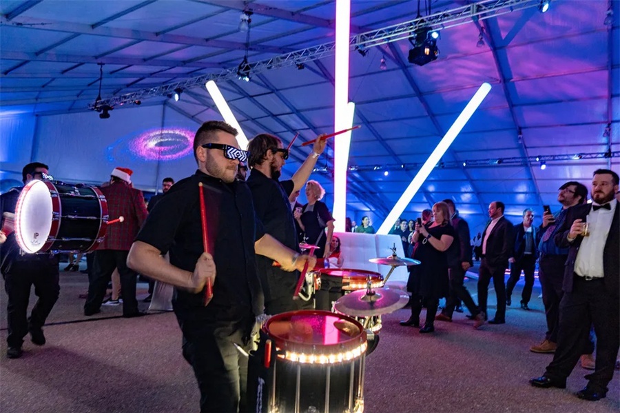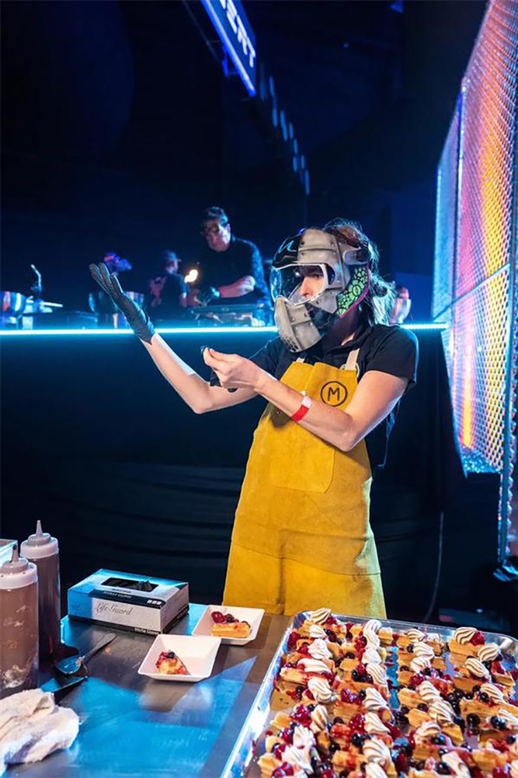 这个以太空为主题的企业假日派对是一个创新的活动,它的发光的细节将客人带到未来。这个活动在斯科茨代尔的西部世界举行,特色是在黑暗中发光,互动街机游戏,和一个可以照相上传社交媒体价值的“光隧道”。公司员工活动对现场的餐饮有较高要求,在这个活动中还邀请了专业的活动餐饮公司对活动中的餐饮进行了策划,推出了全新的生奶酪、未来主义风格的沙拉手墙、点心码头等等。派对活动就是要有创意,还必须有美食方可。