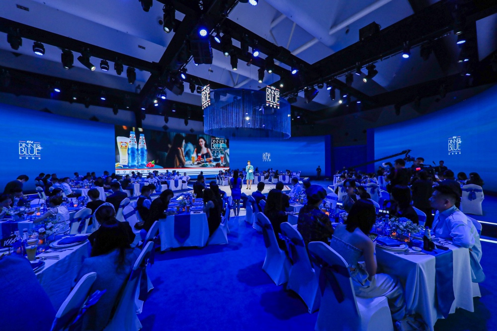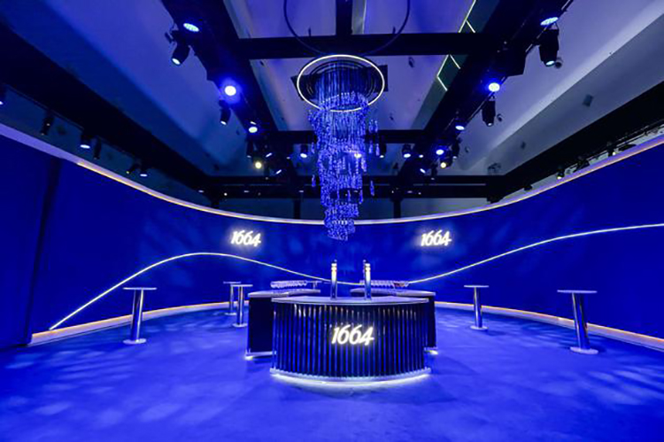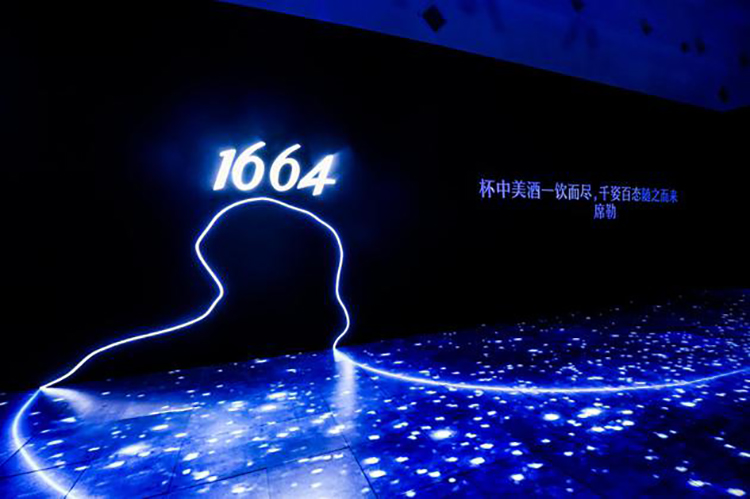 此次1664正以“流动的盛宴”为灵感,将法蓝晚宴现场打造成一个流动的蓝色艺术之地。当来宾们穿过以1664瓶身为形的晚宴入口,步入流动的长廊,艺术的蓝色光影在脚下迂回交错,两旁投影着文学家的经典名句,以沉浸式的体验让来宾仿佛置身于蓝海般流动的画卷中。体验区内多个1664蓝色钴玻璃瓶错落有致地悬挂于顶,来宾们于此谈笑风生,体验法式的精致优雅。而后,步入晚宴主会场,360度的环幕带来视觉上绝对的冲击,错落有致的法式餐桌摆设,流动闪烁的蓝色灯光,在光与影的交错中,将法式风情与艺术之蓝重新组合,开启1664的品味时刻。通过精致晚餐传递法式生活哲学,在享受美酒与佳肴的同时,和重要的人分享,晚餐自然难忘,与1664一起共享品味时刻,正是法蓝晚宴希望传递的美好所在。