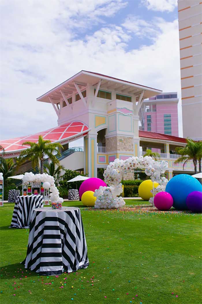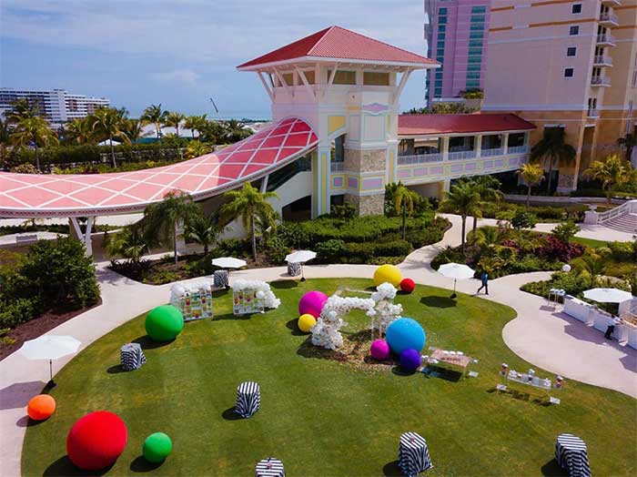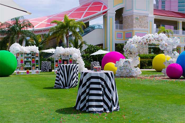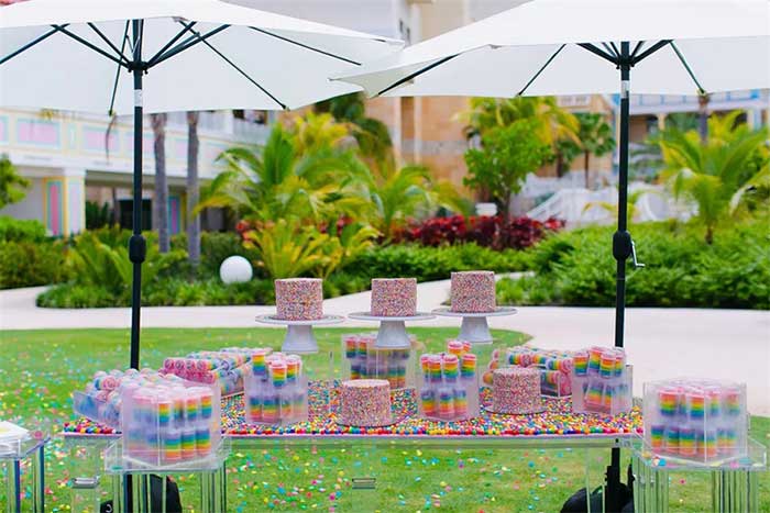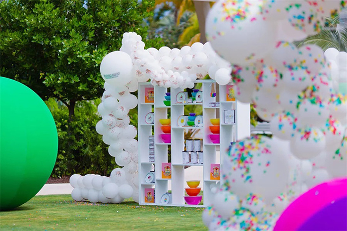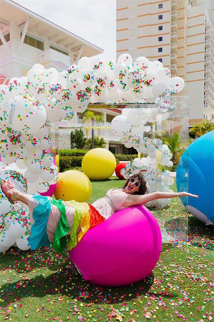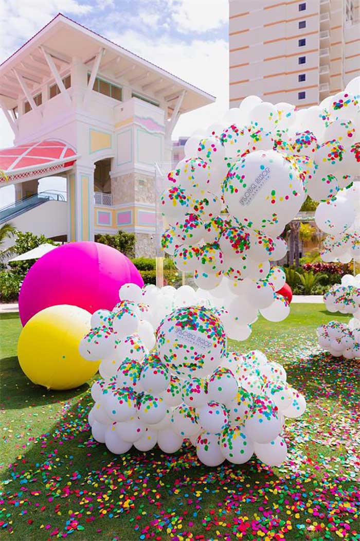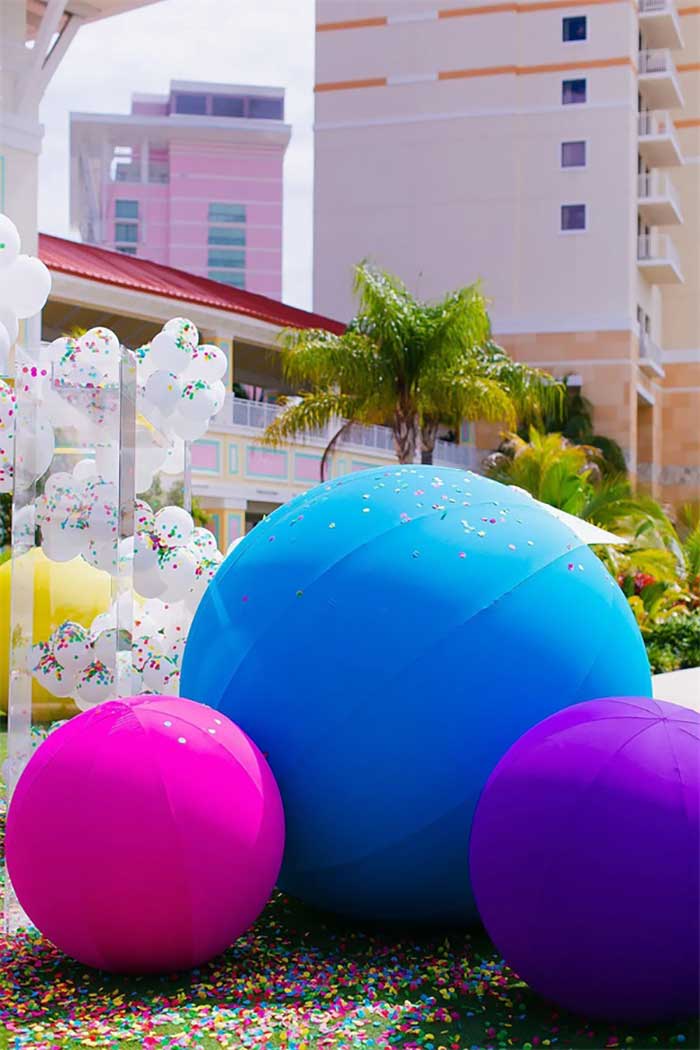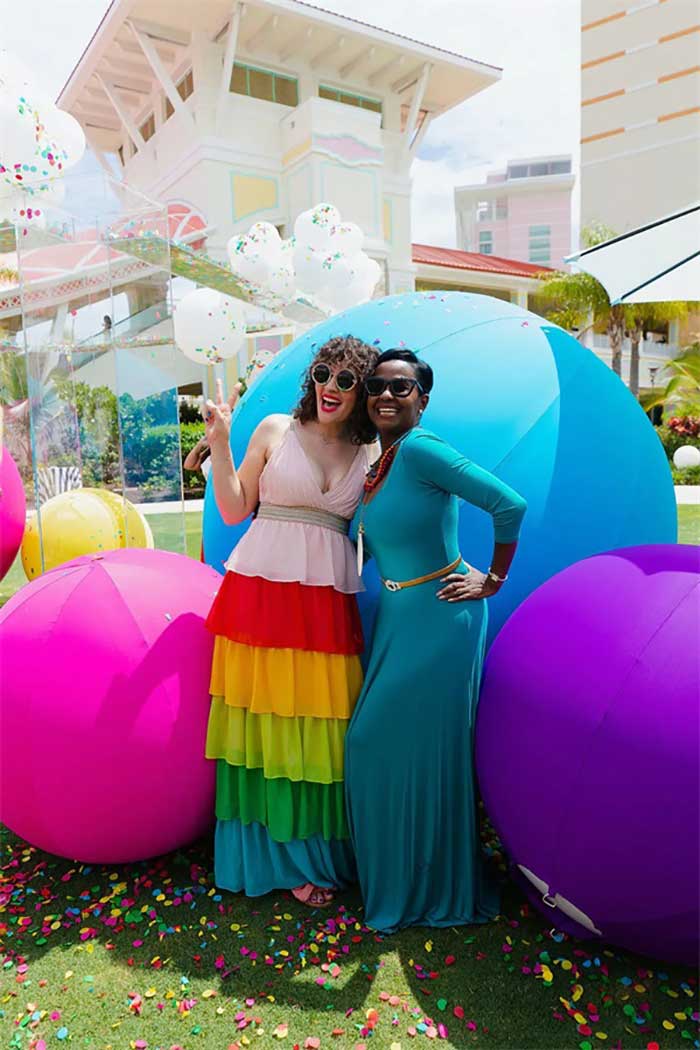 奢华婚礼商务峰会Engage!将全球婚庆行业的主要影响者和潮流引领者聚集在一起,在亲密的环境中交流思想,建立关系网,将他们的事业推向成功的下一个阶段,而此次峰会间歇期间举办的派对活动吸住了眼球,巨大的彩球和有趣的彩虹甜品,彩虹色也让嘉宾觉得很阳光很活跃,婚庆行业就该这样给嘉宾带去活跃与开心吧。